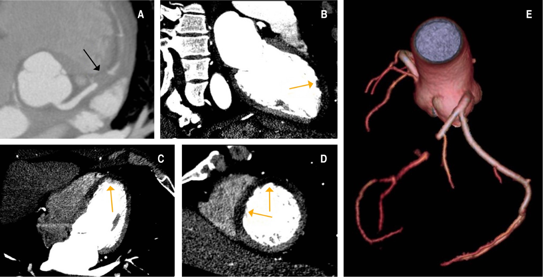 El divertículo ventricular congénito izquierdo (DVCI) consiste en una bolsa de salida de endocardio, miocardio y pericardio, que a menudo se presenta como una proyección de la pared libre del ventrículo, con un cuello estrecho que conecta la cavidad con el ventrículo propiamente dicho. Aunque a menudo se asocia con otras anomalías congénitas cardiacas y extracardiacas, también puede presentarse solo, como un hallazgo incidental en pacientes adultos. Debido a su baja prevalencia general y variabilidad en la presentación, aún no se ha definido un tratamiento estandarizado. Presentamos el caso de un paciente adulto con infarto de miocardio (IM) asociado a cocaína, en el que se evidenció un DVCI septal mediante angio-TC coronaria. Se descartaron otras anomalías cardiacas y el paciente respondió bien al tratamiento médico tras el cateterismo cardiaco; por lo que se prefirió el seguimiento médico y no la cirugía.