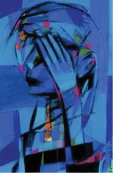 Baruch Elron es un personaje muy conocido dentro del ámbito de las artes en Israel, conoció el dolor, se le amputó la pierna y sufrió el dolor crónico del miembro fantasma, en esta pintura titulada Dolor agudo utilizó colores otoñales para expresar la desolación tanto del cuerpo como del espíritu como causa del dolor que no remite, la pintura se ha hecho muy popular entre investigadores, médicos especialistas y otros profesionistas en el campo del dolor, fue seleccionada por la Federación Europea en los capítulos de la IASP como ilustración central para la Semana Europea Contra el Dolor (Figura 2).4