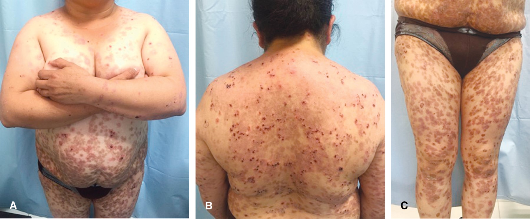 En el caso de esta paciente, se tuvieron que prescribir dosis altas de esteroides debido a la extensión de la dermatosis, las cuales se pudieron suspender en pocos meses.