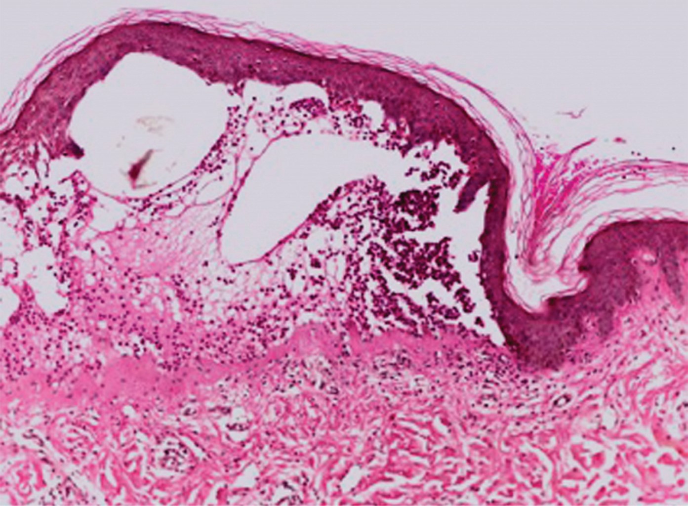 En una revisión de 2013, Chanal y colaboradores encontraron que la enfermedad inducida por fármacos se manifiesta con ampollas de mayor tamaño. En estos casos es frecuente observar el signo de Nikolsky positivo, con todo lo que éste representa, debido a que la evolución del padecimiento es más grave en estos pacientes.1