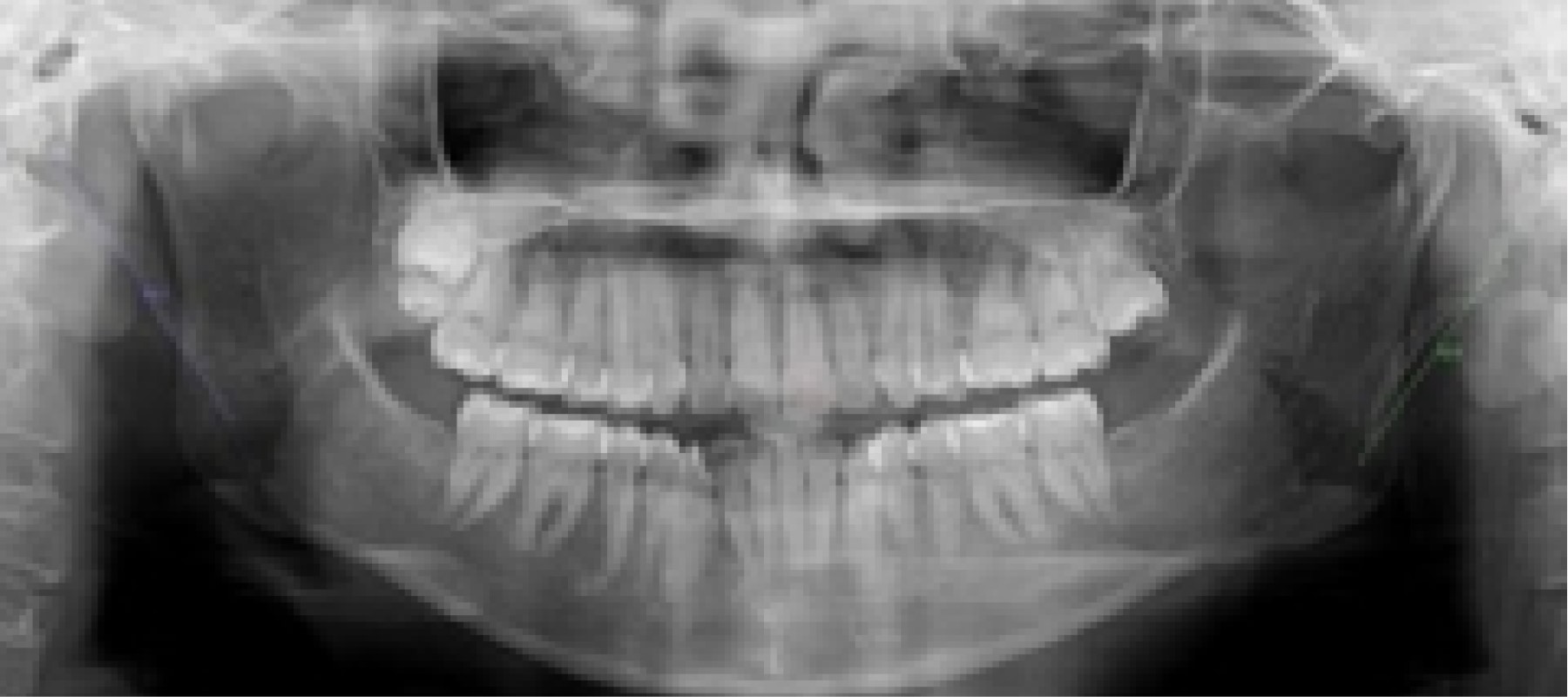 For the diagnosis of elongated SP, a panoramic radiograph was taken for each patient. The measurement of the SP was performed in those which looked elongated and images were captured in the Kodak 8000C digital panoramic and cephalometric imaging system. Before measurement, the measurement reading of the panoramic radiograph was individually calibrated, measuring the length of the clinical crown of an upper central incisor (#11 or #21) and then measuring in the imaging program from the base to the tip of the ossified SP (Figure 2). The values provided by the Kodak Dental Imaging Software 6.12.26.0 program, in mm, were included in the patient database.