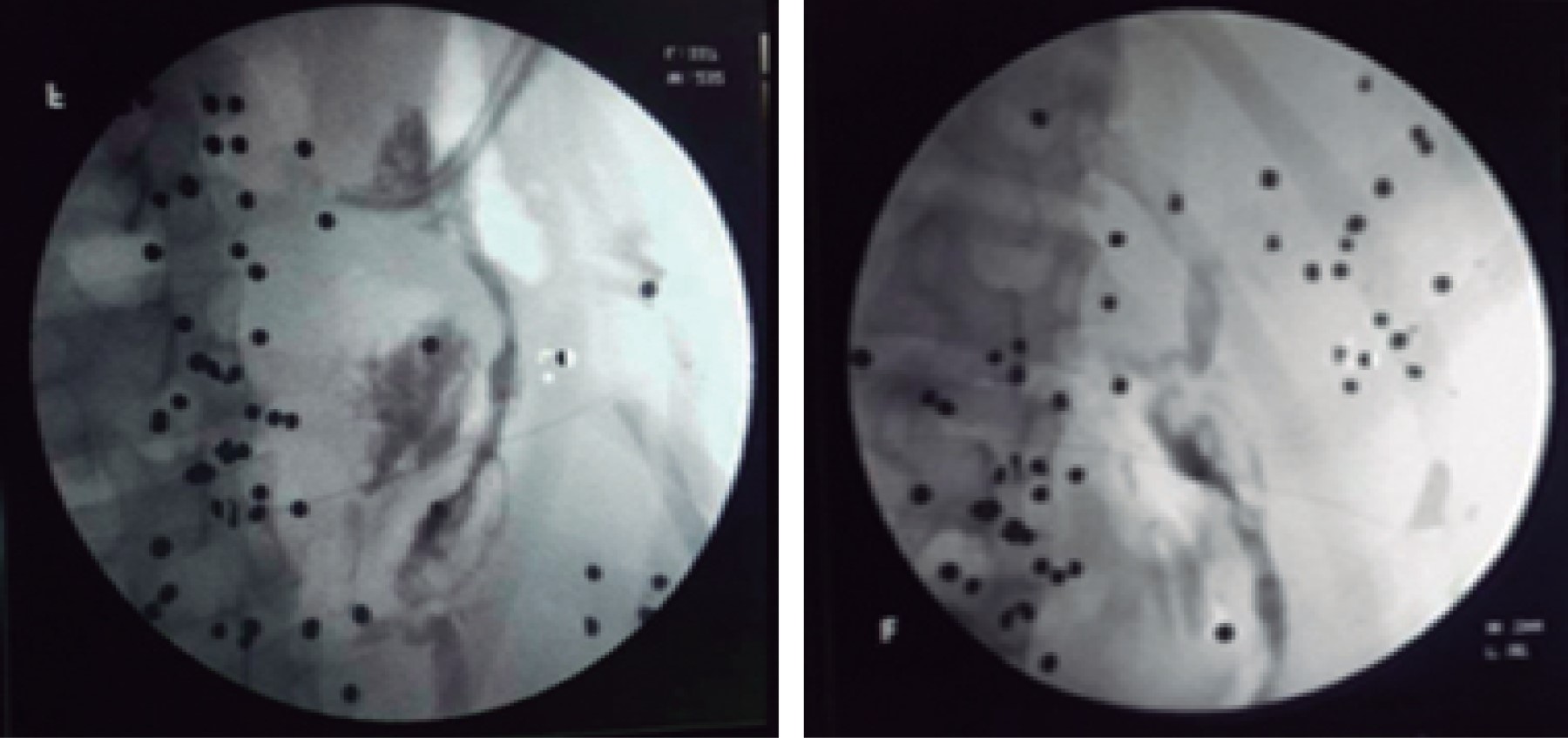 As part of her postoperative control a fistulography study was performed (Figure 4). The drainage was removed two months after discharge, and she had a low drainage output for five weeks until its cessation.