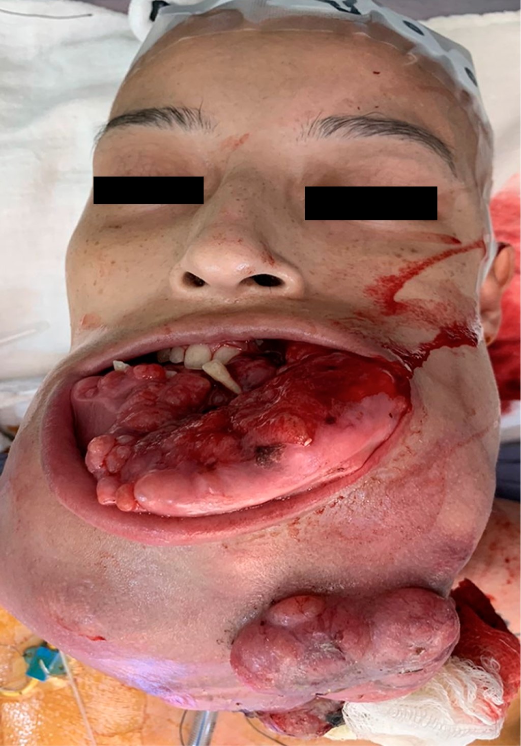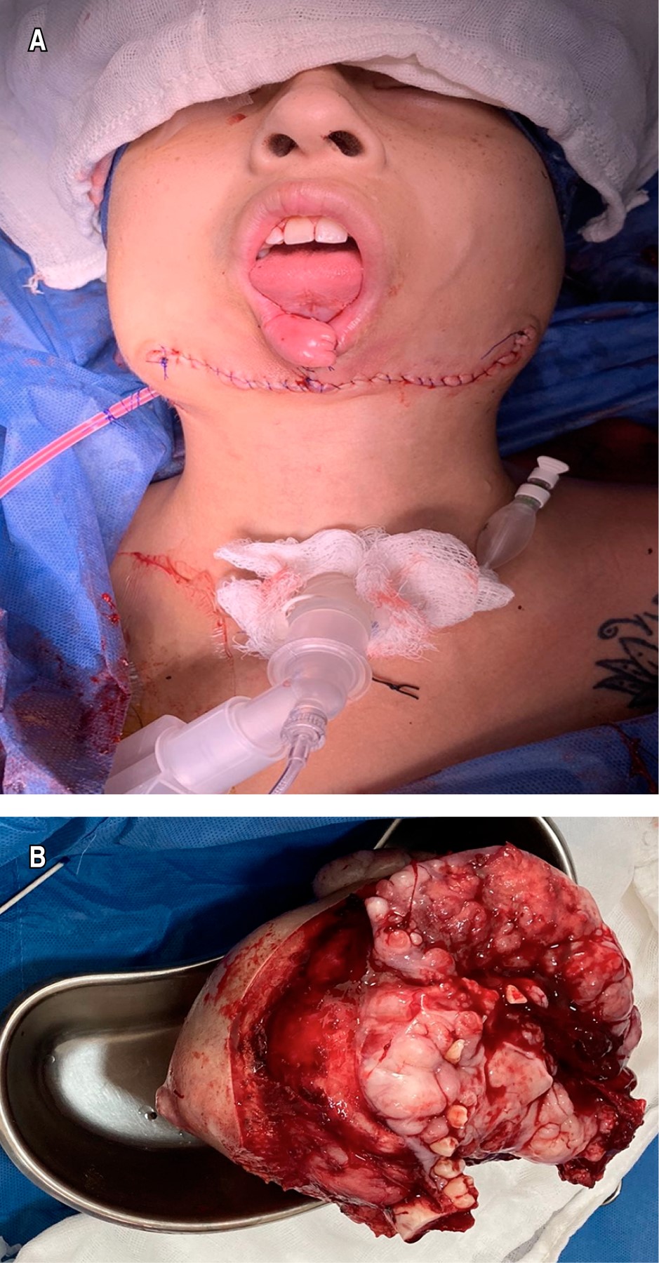 Difficulty in airway management in patients with jaw cancer is mainly due to anatomical and physiological changes, as well as radiotherapy and adjuvant chemotherapy. Airway management is considered challenging in these patients with respect to the inherent problems of difficult airway due to mass. The case of a 19-year-old female is described, previously healthy with a diagnosis of fast-growing grade 3 osteosarcoma, scheduled for mandibulectomy, tracheostomy and gastrostomy and the anesthetic management that was offered, focused on the management of the airway.