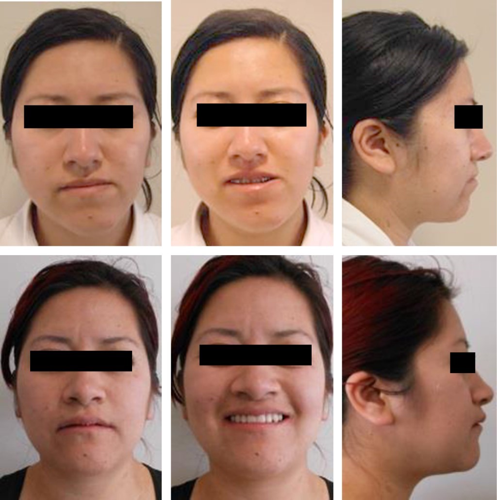 A high Le Fort I osteotomy is favourable for the correction of maxillary deficiencies and lack of zygomatic projection.7 Also, the choice of vertical osteotomies in the mandible together with the posterior intrusion of the maxilla allowed the mandible to be redirected, rotating it in a counterclockwise direction. The surgeon must take into account the changes that occur in the soft tissues with the skeletal movements typical of surgery because the success of orthognathic surgery will be based on these, and whose objective is to restore functionality and a satisfactory aesthetic appearance to the patient. In addition to the remarkable changes observed, both facially and dentally, we observed positive changes in the patient's attitude and self-esteem, improving her quality of life. It is very important to analyze the patient's expectations, as well as the limitations of the case.