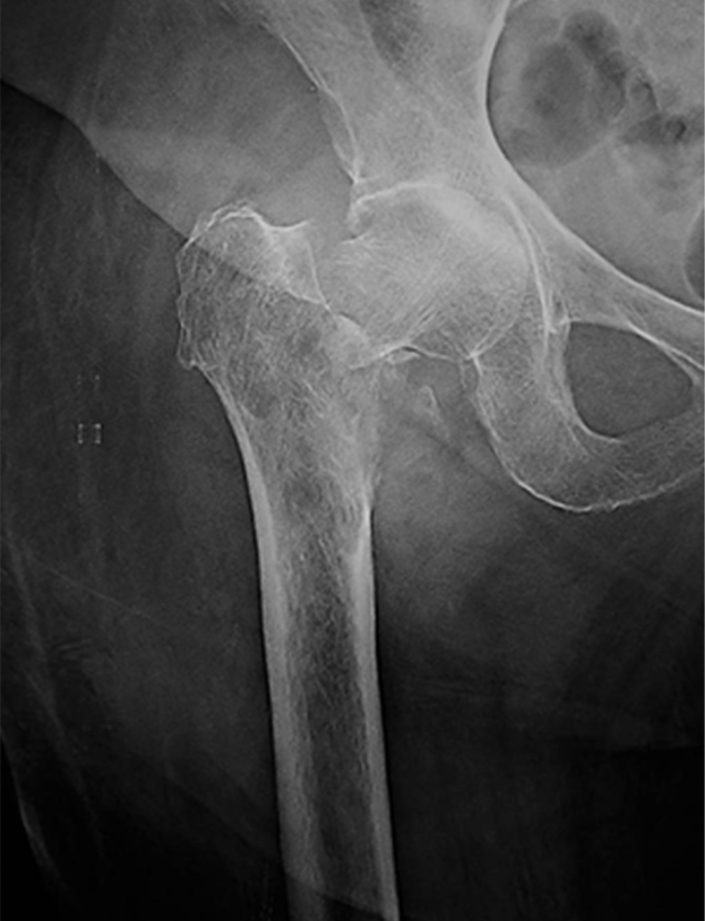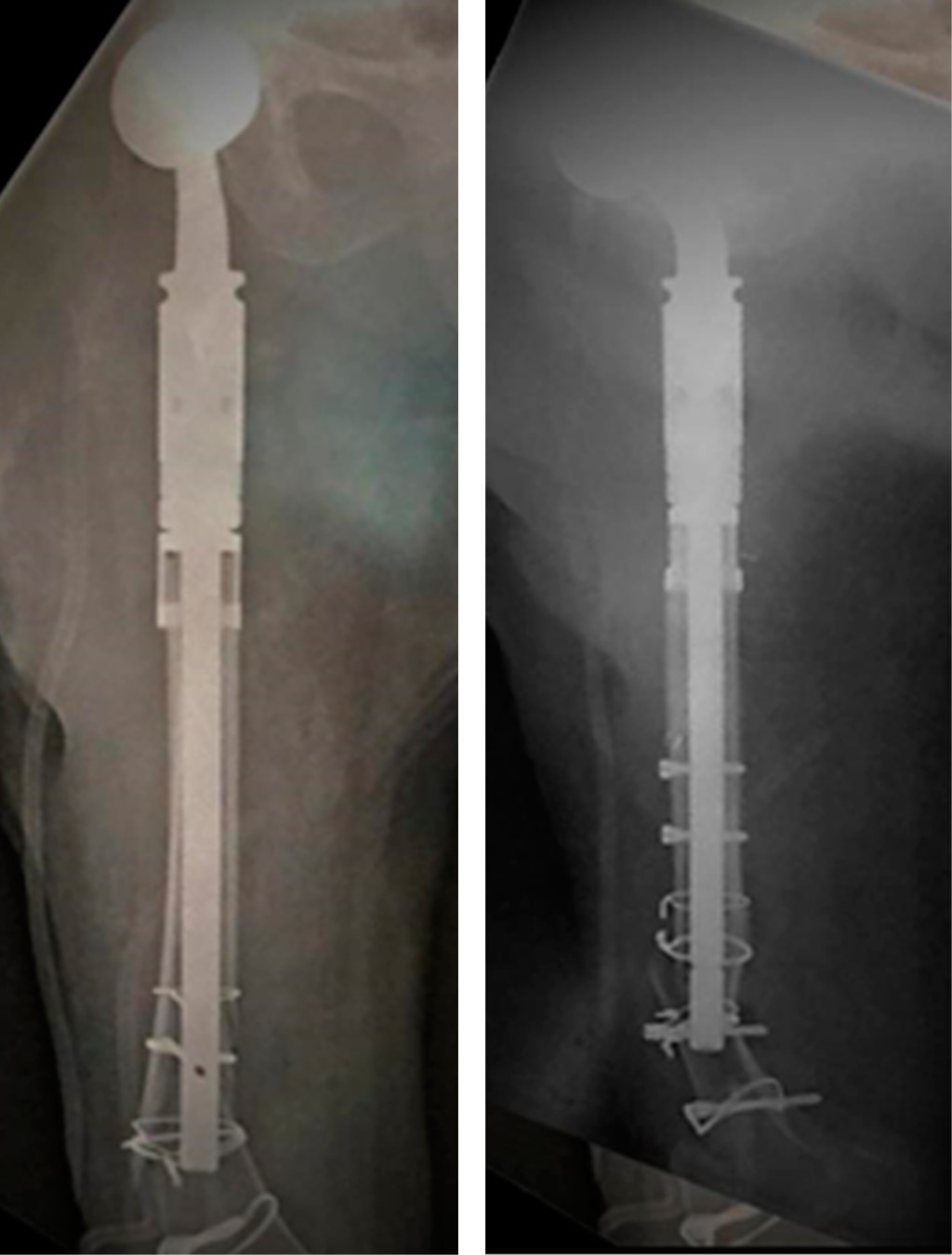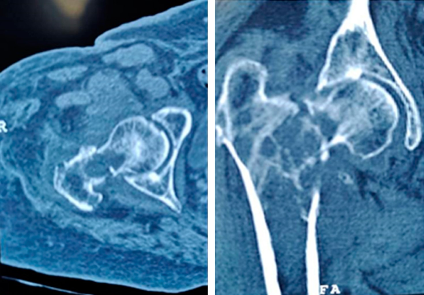 Bone metastases from a primary cancer of any part of the body are the most common form of malignant bone tumor constituting approximately 70% of them. The proximal femur being the most common extra-vertebral location for its location; 10% of patients have some pathological fracture, which is a serious complication. Currently the objectives of the treatment of a pathological fracture are: resection with adequate oncological margins, that the patient survives the surgical intervention, maintain the functionality, that the placed implant has a longer life time than the patient. The use of non-conventional hip prostheses is an excellent treatment option fulfilling the 4 established objectives, therefore this case is presented in which a right bipolar hip hemiarthroplasty is performed with a non-conventional prosthesis where it was treated with a described complication and the surgery of resolution.REFERENCES