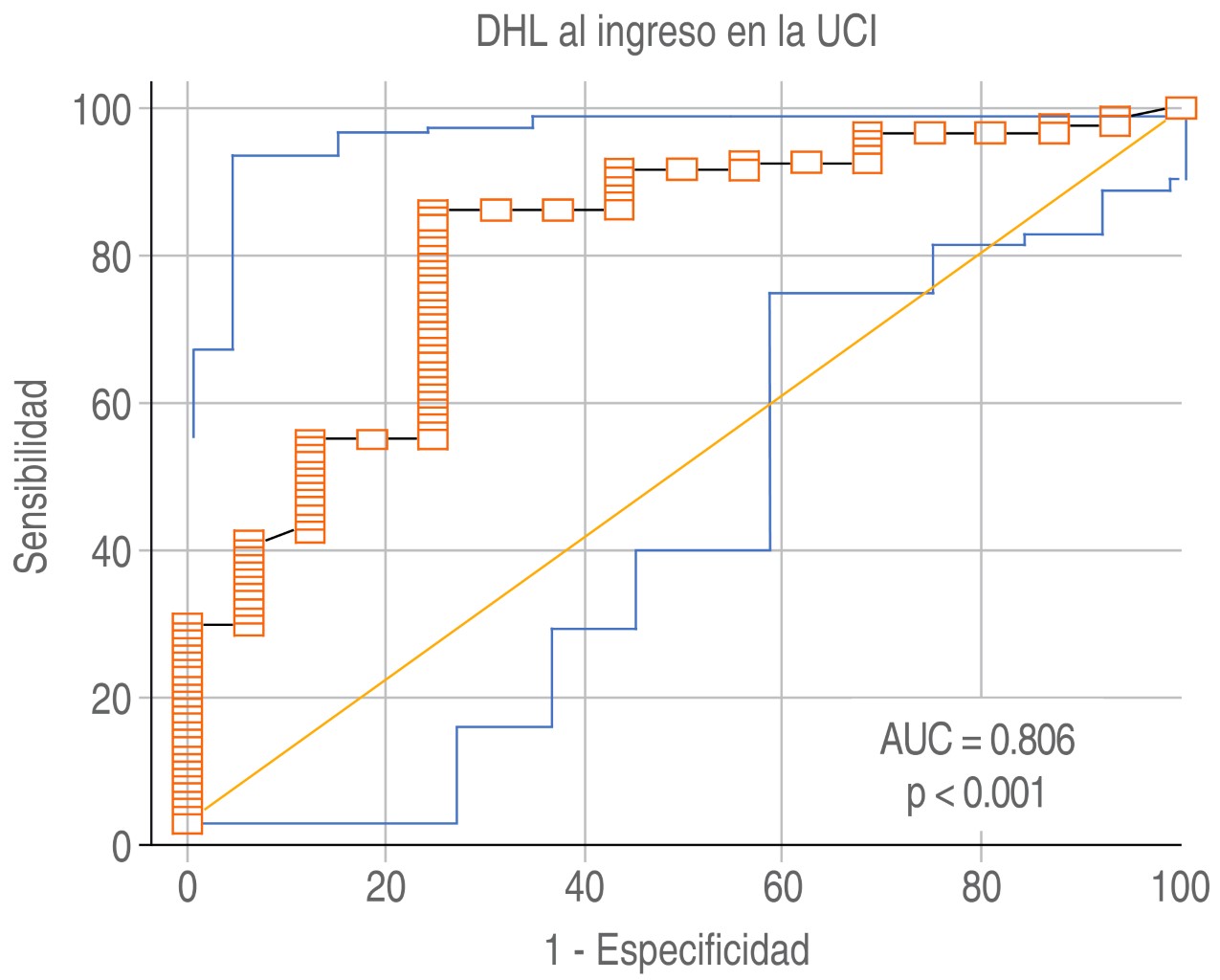 Objective: To determine the diagnostic performance of serum LHD levels on admission to the ICU as a marker of severity in patients with SARS-CoV-2 infection.