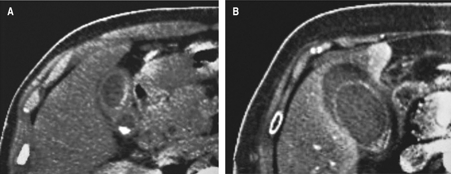 Cardiovascular diseases also occur due to hepatic venous congestion. However, their relationship has not been fully established. In most cases, a relationship between cardiovascular diseases and gallbladder edema has been reported.18 In this series, only two patients without surgical treatment had an acute myocardial infarction. One of them died from an acute transmural myocardial infarction, and the other patient had congestive heart failure as a sequel. In addition, one patient had fungal pneumonia. This etiology has not been reported as a cause of gallbladder wall thickening until now.