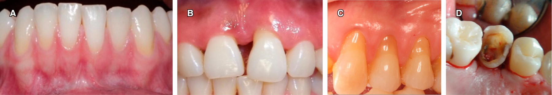 - b. Gingivitis mediated by local and systemic risk factors. Even though dental biofilm is this disease etiological factor, gingivitis clinical manifestations might vary according to predisposing and modifying factors10 which can exacerbate the clinical inflammation signs (Figure 3B).