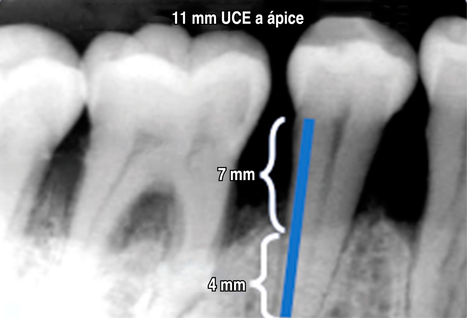 - ii. Non- periodontitis patient, who presents a reduced periodontium due to gingival recessions or who underwent resection procedures such as crown lengthening (Figures 2C y 2D).11