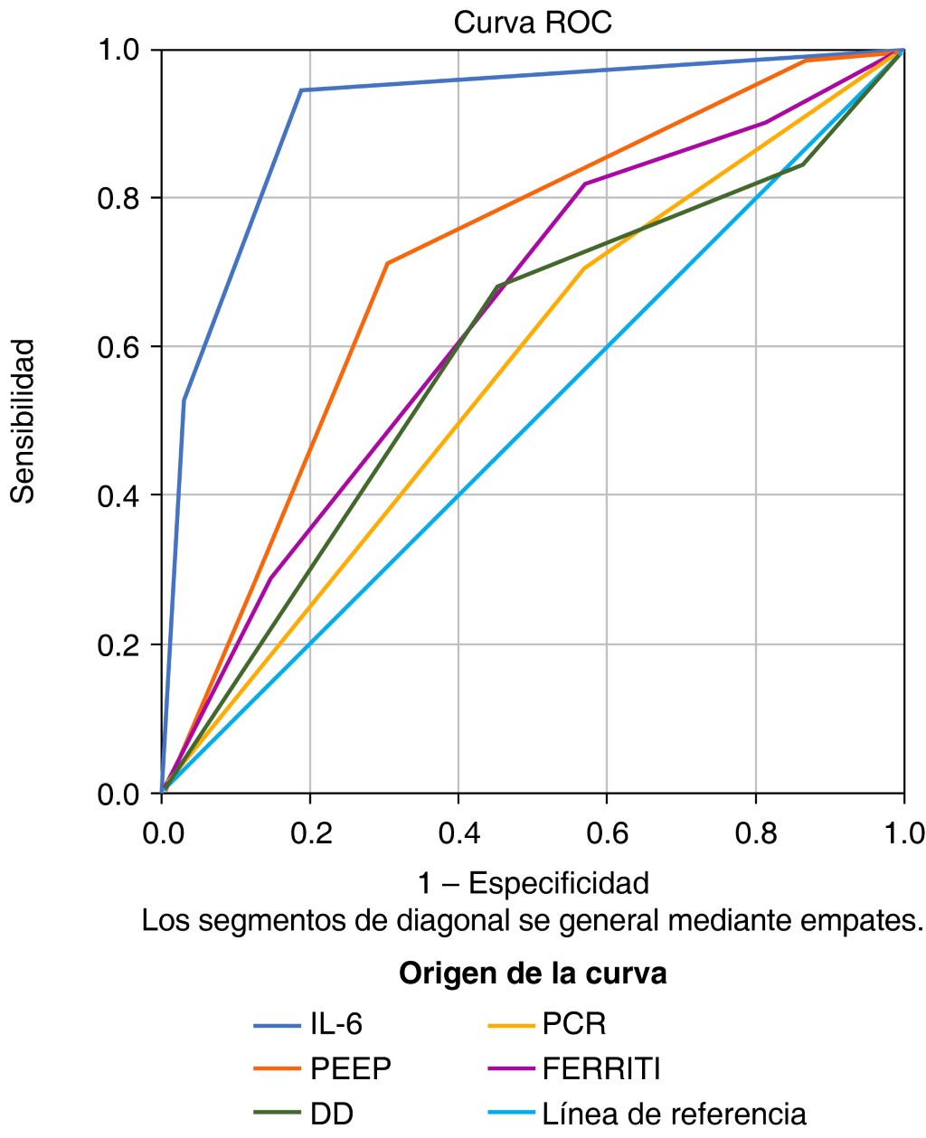 Results: A total of 210 mechanically ventilated patients with SARS-CoV-2 in the Respiratory Intensive Care Unit of the ABC Medical Center were analyzed, of whom 51 patients (24.17%) developed AKI and 21 patients required RRT. An ROC curve was performed to predict the factor with the highest risk of developing AKI, finding significant differences in IL-6 with an area under the ROC curve of 0.909 (CI: 0.86-0.95). Statistical significance was found in AKI with PEEP above 13cmH