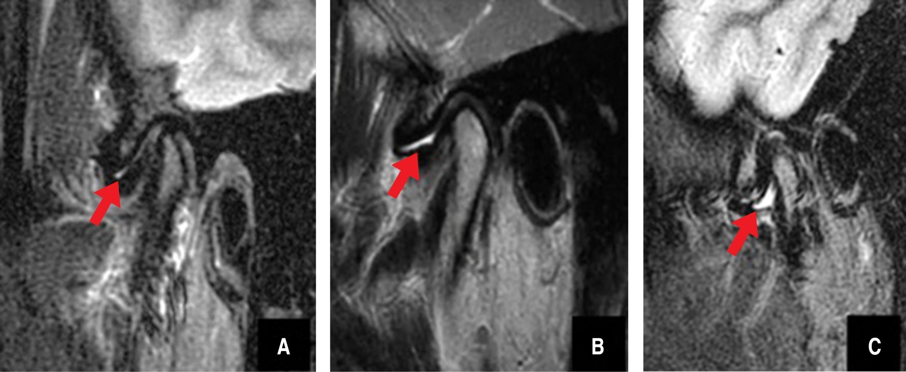 Larheim TA, Westesson P, Sano T. Temporomandibular joint disk displacement: comparison in asymptomatic volunteers and patients. Radiology. 2001; 218: 428-432.