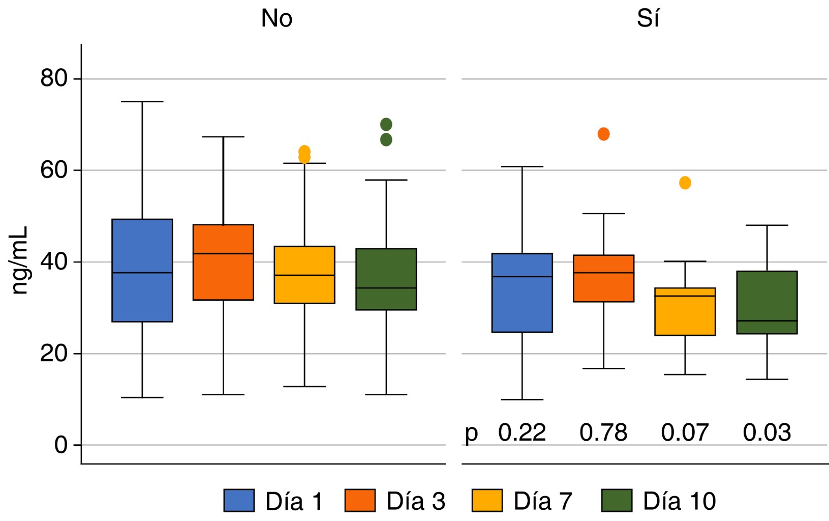 Material and methods: We conducted an observational, retrospective and longitudinal cohort study in patients admitted to the Respiratory Therapy Unit of the ABC Medical Center, from April to July 2020, with a diagnosis of SARS-CoV-2 pneumonia with IMV. We use the STATA program for statistical analysis. We performed a linear analysis of repetitive measures by logistic regression to evaluate the chronological behavior of the inflammatory variables. Subsequently, we adjusted the inflammatory markers with demographic variables, to obtain diagnostic certainty and prediction of risk of thrombotic events.