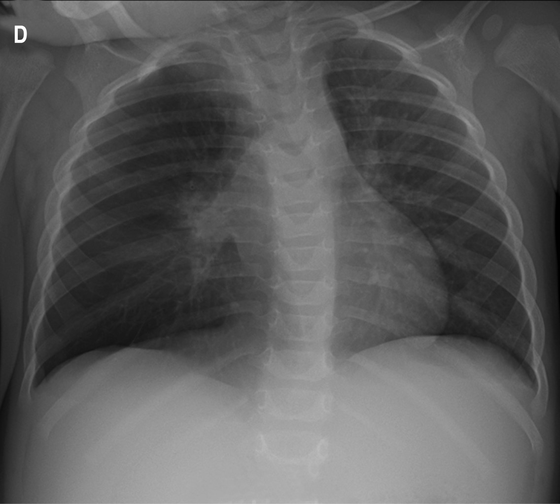 We present the radiological image of a 14-month-old infant who required hospital admission for acute bronchitis. Due to the persistence of the symptoms and asymmetry in the pulmonary auscultation, a chest X-ray was taken, in which hyperinflation of the right lung and partial atelectasis of the middle lobe were observed. These findings suggested aspiration of a foreign body, which was verified when the patient expelled it spontaneously, and the symptoms disappeared.