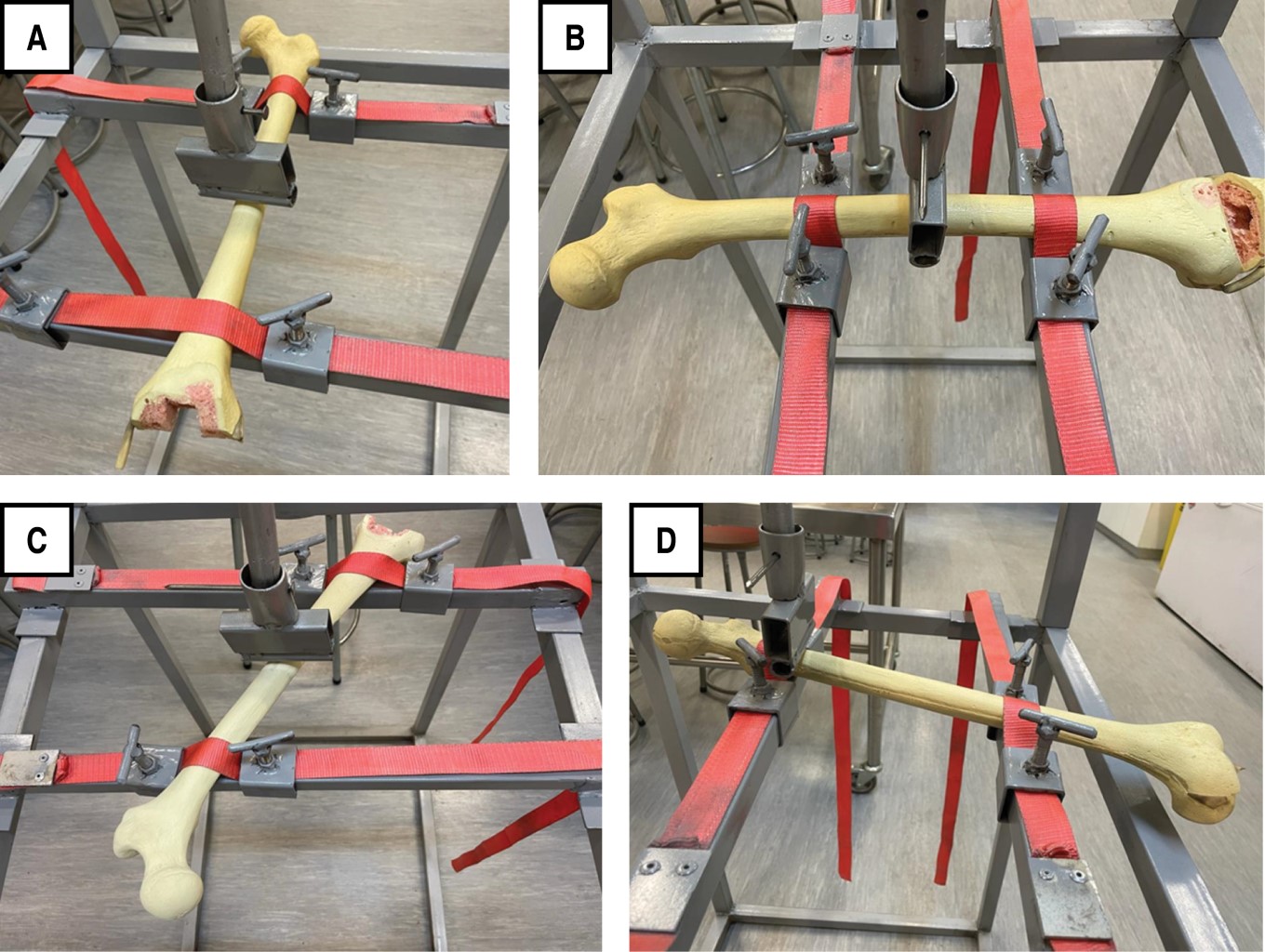 ®) and four subgroups were performed: three points far from the fracture, three points near the fracture, oblique position of the artificial femur, three points in the subtrochanteric region. A survey was conducted on 10 traumatologists with more than 10 years of experience.