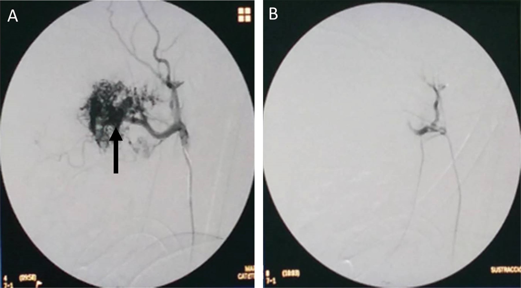 Clinical case: ten-year-old male, with a history of nine months of unilateral nasal obstruction of approximately, associated with episodes of rhinorrhea, nocturnal hoarseness, mouth breathing, hyposmia and recurrent epistaxis. Imaging studies identified a tumor with irregular borders at the paranasal sinuses, concluding that it was a nasopharyngeal angiofibroma in stage IIb of the Radkowski classification. Tumor embolization is performed, and after 24 hours the tumor is removed by nasal endoscopic surgery. One year after resection, no tumor recurrence was documented.