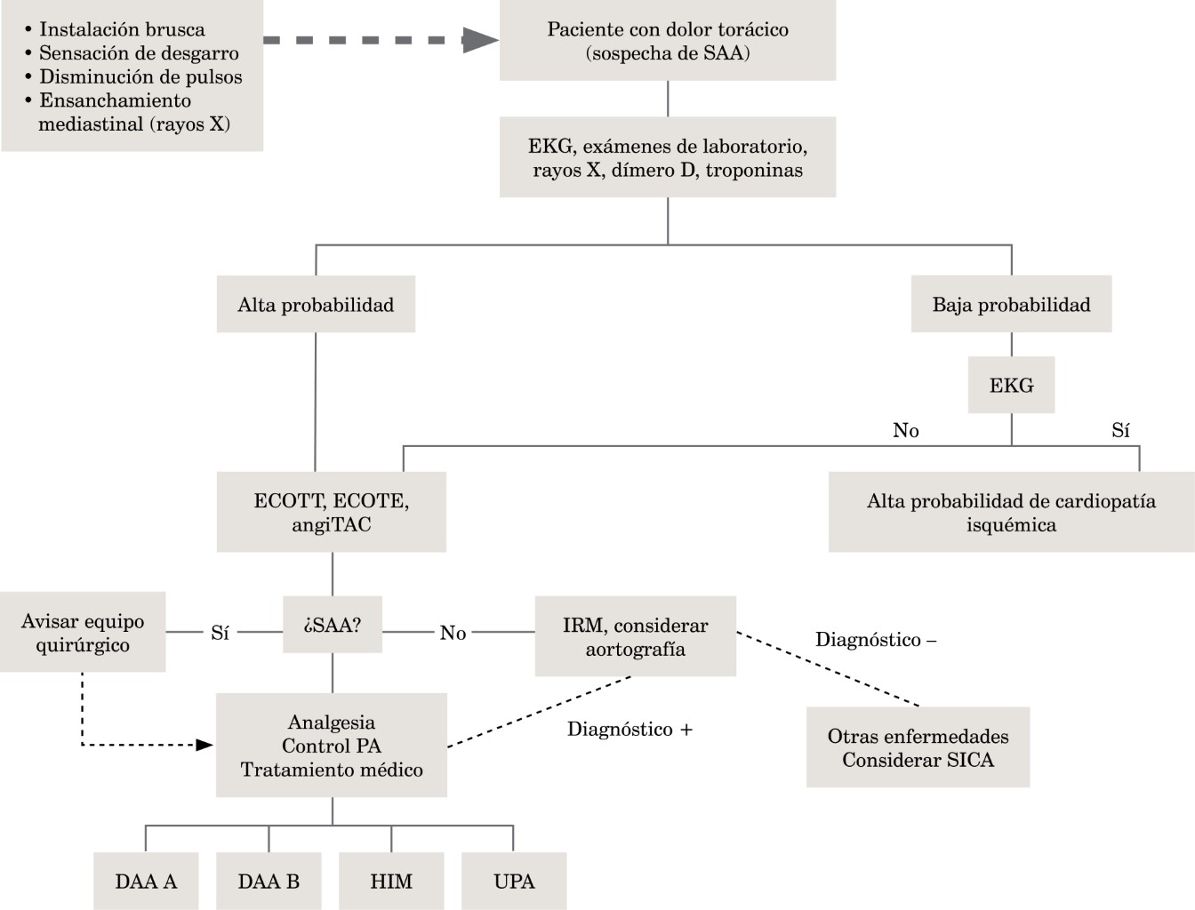 Saez de Ibarra Sánchez JI, Enriquez Palma F. Abordaje en Urgencias de una disección aórtica. JANO: Medicina y Humanidades 2009, pp. 27-32.