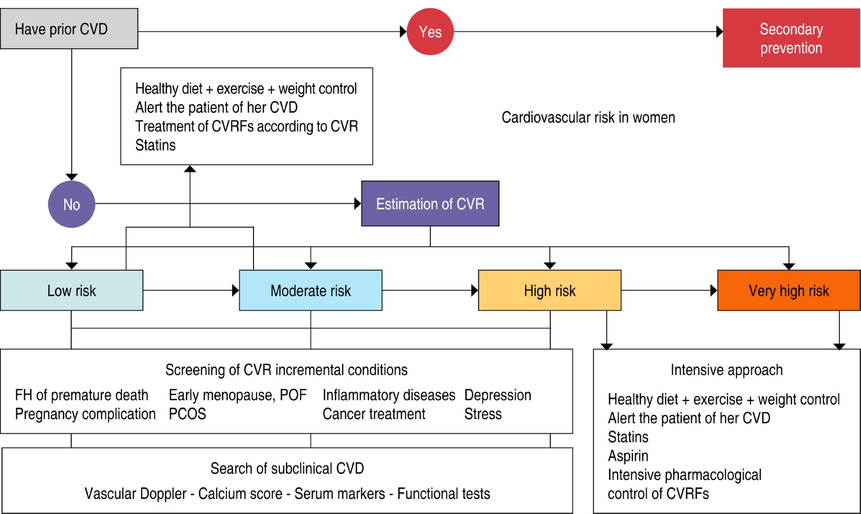 Algorithm for estimating cardiovascular risk in women (Figure 1).10 Women who have had CVD or those with evidence of atherosclerotic disease without a previous event should be treated with secondary prevention goals.