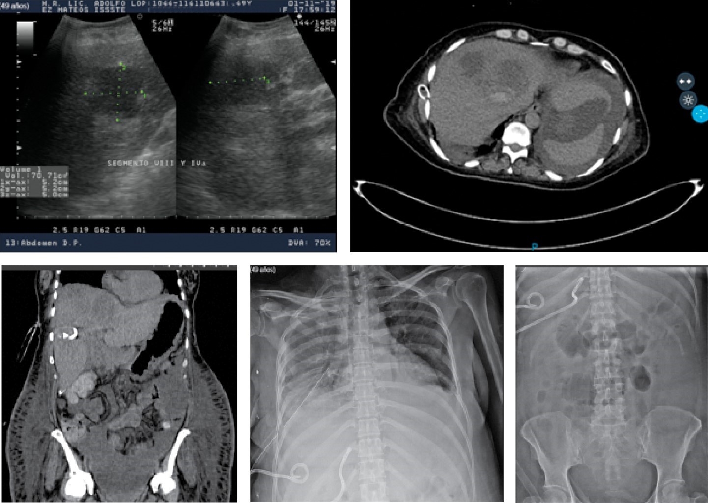 Hepatic abscesses are the most common type of visceral abscesses; however, they continue to be potentially fatal, with a mortality of between 2 and 12%. It presents an incidence of 2.3 cases per 100,000 and is more frequent in women with a ratio of 3.3:1; on the other hand, the incidence changes in Asia, increasing to 11 to 18 cases per 100,000 inhabitants. Risk factors include diabetes, hepatobiliary or pancreatic pathology, liver transplant, history of pulque intake, acute appendicitis, sepsis, diverticulitis, and colorectal neoplasia. Among the most associated pathogens, we find E. coli, K. pneumoniae, anaerobes, S. milleri, S. aureus, and Candida spp. and Pseudomonas aeruginosa, being these agents infrequent causes and can be found only in specific contexts. Pathogens may vary depending on the geographical region.10,11