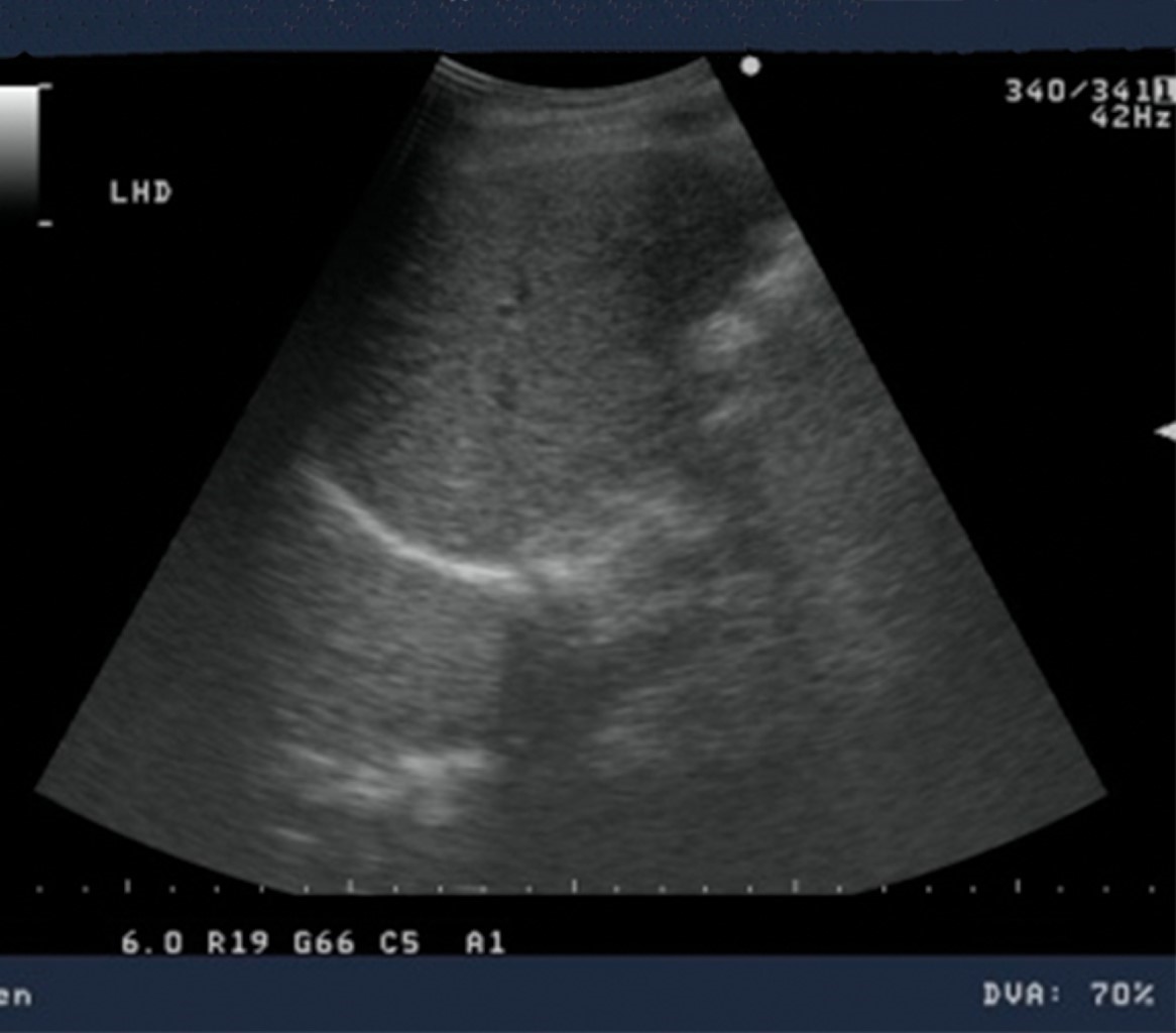 Within the clinical picture, the main symptoms are fever and abdominal pain in 90% of the cases. Abdominal pain is localized in the right hypochondrium, accompanied by rebound and tenderness, followed by nausea, vomiting, anorexia, general malaise, and weight loss in up to 50-75% of cases. Laboratorially, patients present elevated bilirubin, liver enzymes, and alkaline phosphatase in 67-90%; we also find leukocytosis, hypoalbuminemia, and anemia in a third of the cases.15