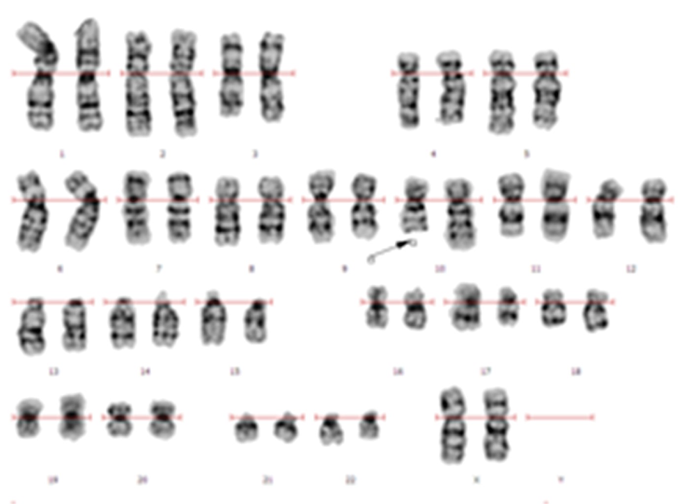 Conclusions: paracentric inversion in the long arm of chromosome 10 in the mother constitutes a balanced rearrangement, causing a deletion in the same chromosome in her daughter.