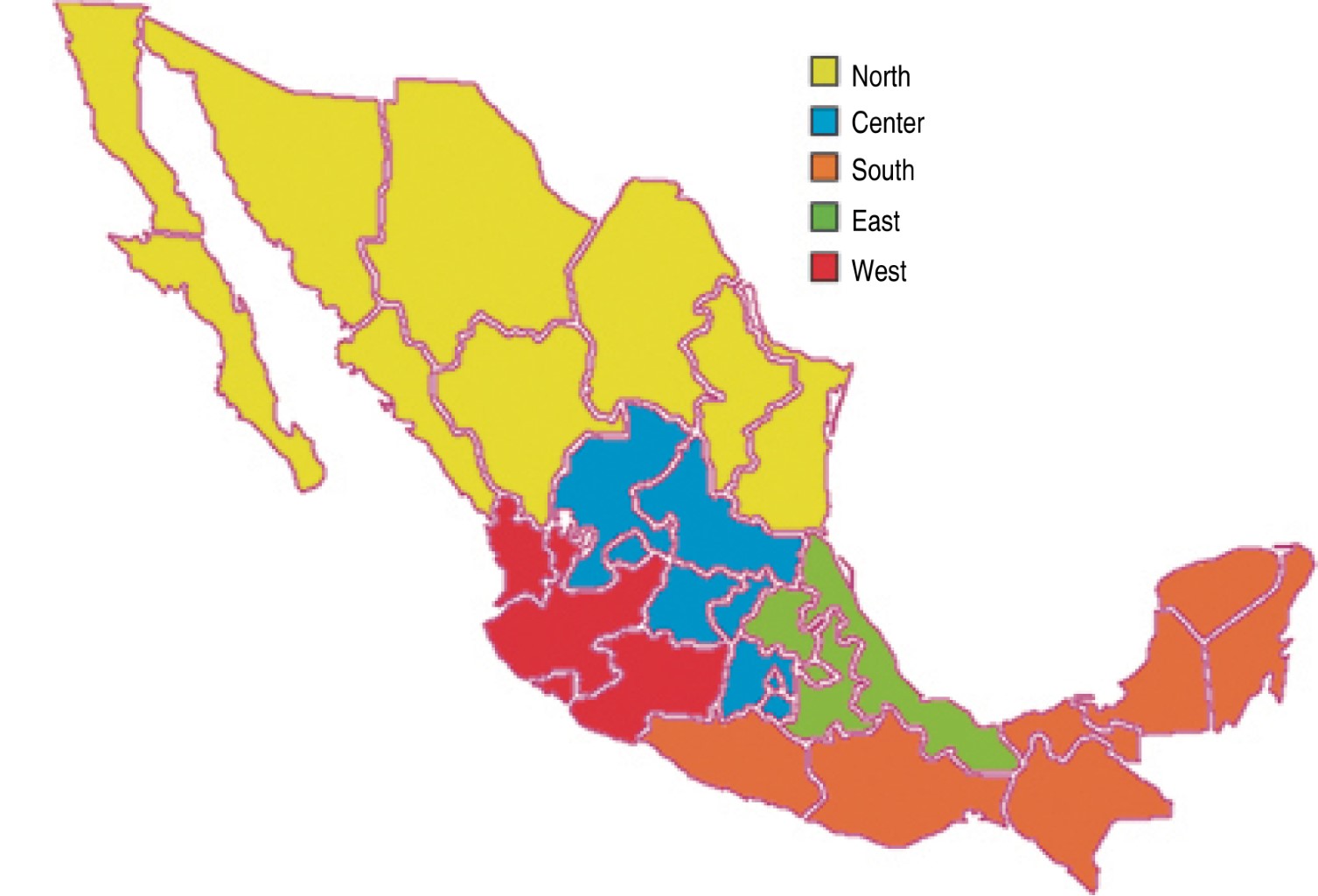 The territorial classification was used to define the corresponding region within the interior of the Mexican Republic (Figure 1).