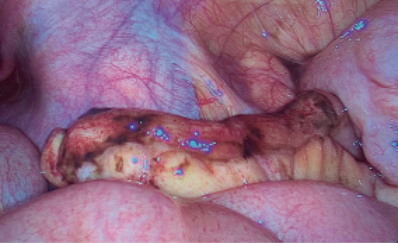 The treatment strategy consists mainly of surgery and hormonal therapy (the application is determined depending on the patient's age and symptomatology).5 Surgical treatment is preferably performed laparoscopically since its use allows exploration of the entire peritoneal cavity.5 In 2001, using laparoscopy, Nezhat described the first intestinal resection for endometriosis.9 Rodriguez-Wong and Rodriguez-Medina reported the case of a patient with appendicular endometriosis, managed by infraumbilical right paramedian laparotomy and appendectomy with the Ochsner technique. The patient had a favorable clinical course and received six-month complementary hormonal therapy.10