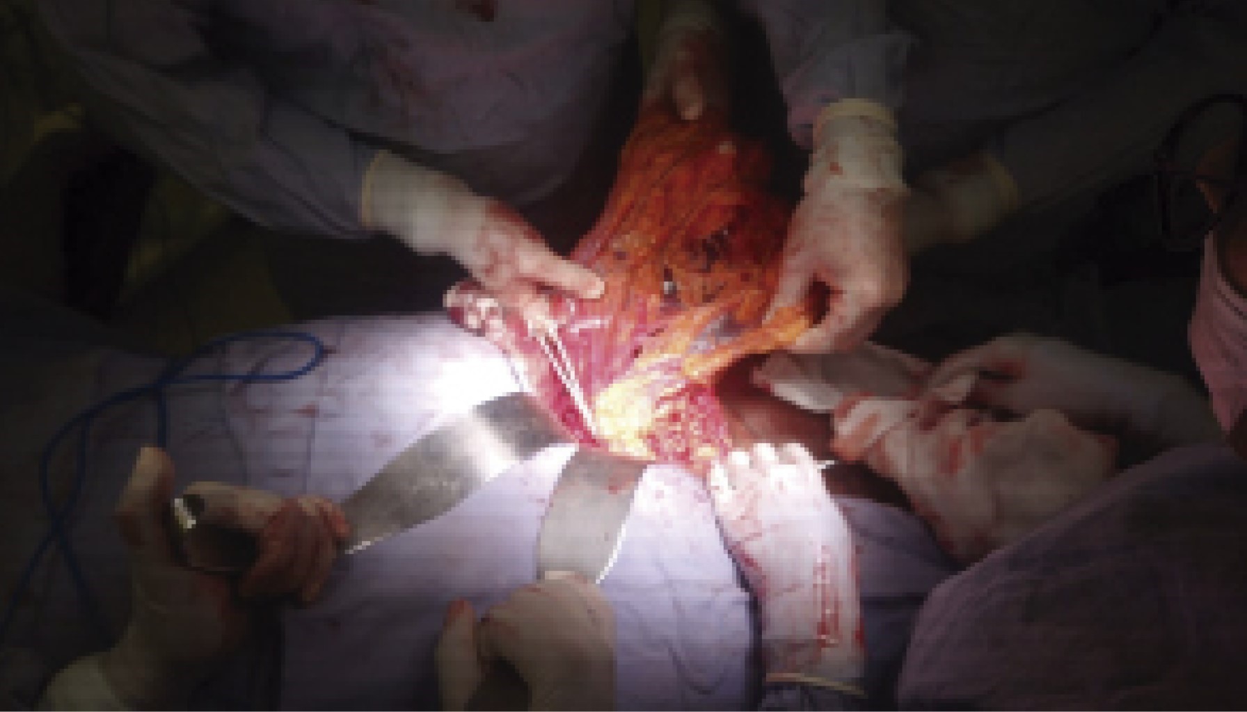 Other techniques reduce the content of the hernial sac, also known as debulking, which consists of resection of the colon, small intestine, omentum, and spleen, among others; however, they are associated with a high rate of complications such as dehiscence, abdominal sepsis, and intestinal fistulas.8-12 In our case, there was no difficulty in reducing the hernial content. Therefore, a debulking procedure was not necessary.
