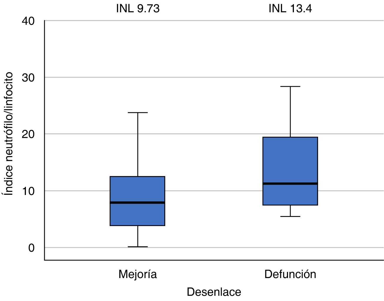 Introduction: burns are a serious public health problem, with several studies estimating that more than 11 million people were affected by burn injuries with approximately 300,000 deaths worldwide. Studies showed that the main causes of death were inhalation injuries, infection, and metabolic and hemodynamic complications ending in multi-organ failure. It has been shown that the increase in the systemic inflammatory response, whose parameters can be easily obtained, can be useful and directly related to poor prognosis. Several clinical studies indicate that the ratio of neutrophils to lymphocytes, an indicator of systemic inflammatory response, can signify the presence of inflammation in some diseases such as diabetes, coronary artery disease, cholangitis, rheumatoid arthritis, and recently COVID-19. Objective: to know the association between the neutrophil lymphocyte index as a biomarker of mortality in patients with major burns. Material and methods: an observational, retrospective, descriptive, longitudinal study will be carried out: with a user population of the National Center for Research and Attention to Burned Patients (CENIAQ) of the Luis Guillermo Ibarra Ibarra National Rehabilitation Institute. A review of the clinical records of the patients treated in the period will be carried out during the period from February 1, 2020 to February 28, 2022, the data of admission and discharge will be taken into account, as well as initial laboratory studies. The information will be recorded in an Excel spreadsheet to be later analyzed in the SPSS software, the results will be obtained and finally their analysis will be carried out. Results: in the analyzed population we found that the average age is 40 years, it was also found that the most affected gender in this population corresponds to the male gender with 81.2%. It was also found that, within the diagnoses of the population studied, fire burn was the one that most affected the population, this being 67.1% of all diagnoses. However, in this study no significant difference was found in the neutrophil lymphocyte index with respect to the type of burn. In our analysis, the neutrophil lymphocyte index was included as a biochemical predictor of mortality, since high levels of this index at admission are associated with increased mortality. In our population, a significant difference was found between the groups with a fatal clinical outcome and those who recovered, which is why it can be considered as a predictor of mortality in these patients since they presented a p value < 0.023, data that is consistent with what is reported in the international literature where the Neutrophil lymphocyte index value can be used as a predictor of mortality. Conclusions: an association was found between the elevation of the neutrophil/lynphocyte ratio and mortality in patients with severe burnsREFERENCES