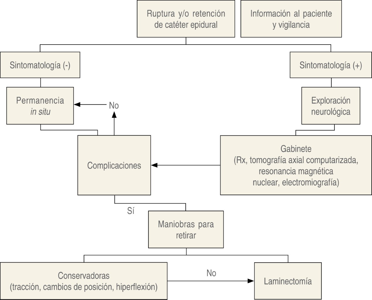Mitra R, Fleischmann K. Management of the sheared epidural catheter: is surgical extraction really necessary? J Clin Anesth. 2007; 19 (4): 310-4. Disponible en: http://dx.doi.org/10.1016/j.jclinane.2006.11.005