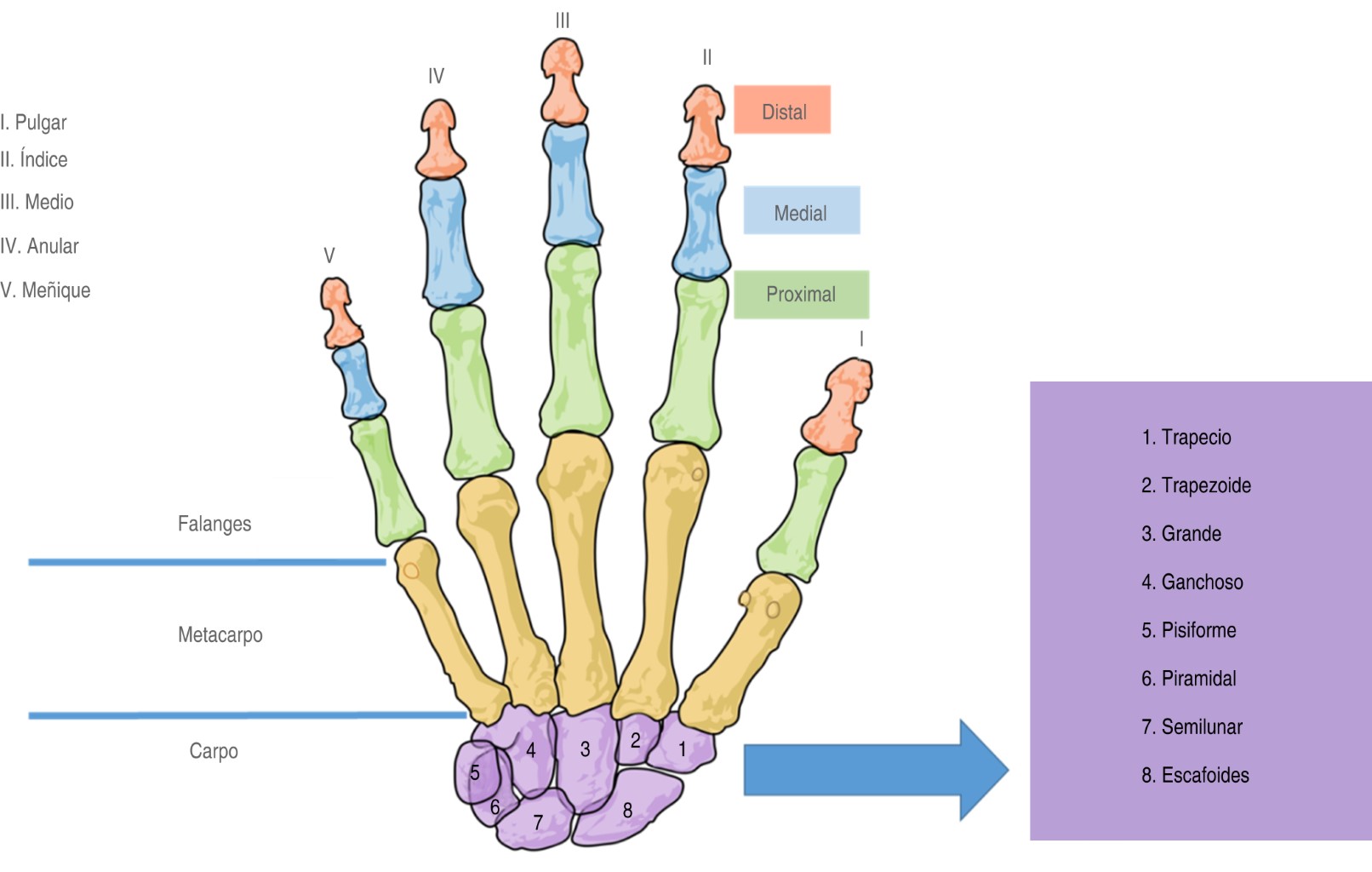 In order to describe radiographic projections, it is necessary to have a detailed understanding of the structure of the anatomy of the hand and fingers. The skeletal anatomy of the hand consists of 27 bones in total, classified as follows: eight carpal bones, five metacarpal bones and fourteen phalanges (Figure 1).3 In clinical orthodontics, measurement of physical development and assessment of skeletal age is relevant.4