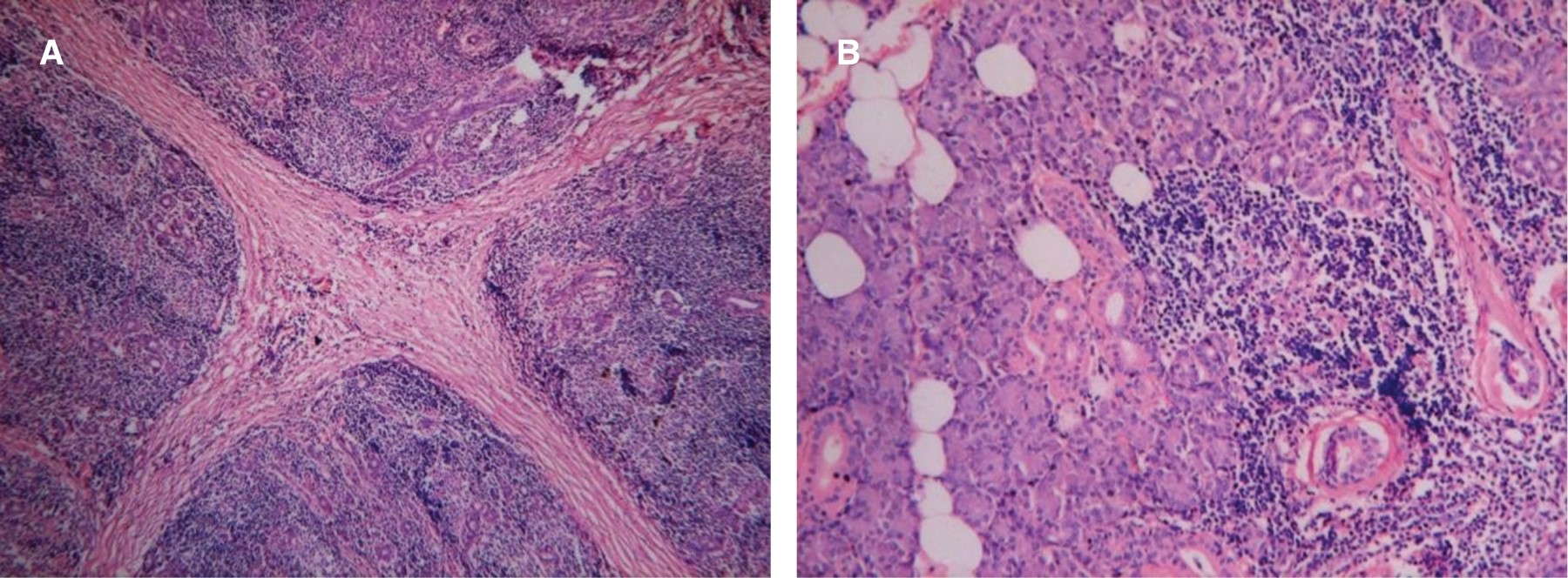 Leon ME, Santosh N, Agarwal A, Teknoa TN, Ozer E, Iwenofu OH. Diagnostic challenges in the fine needle aspiration biopsy of chronic sclerosing sialadenitis (Küttner's tumor) in the context of head and neck malignancy: a series of 4 cases. Head Neck Pathol. 2016; 10: 389-393.