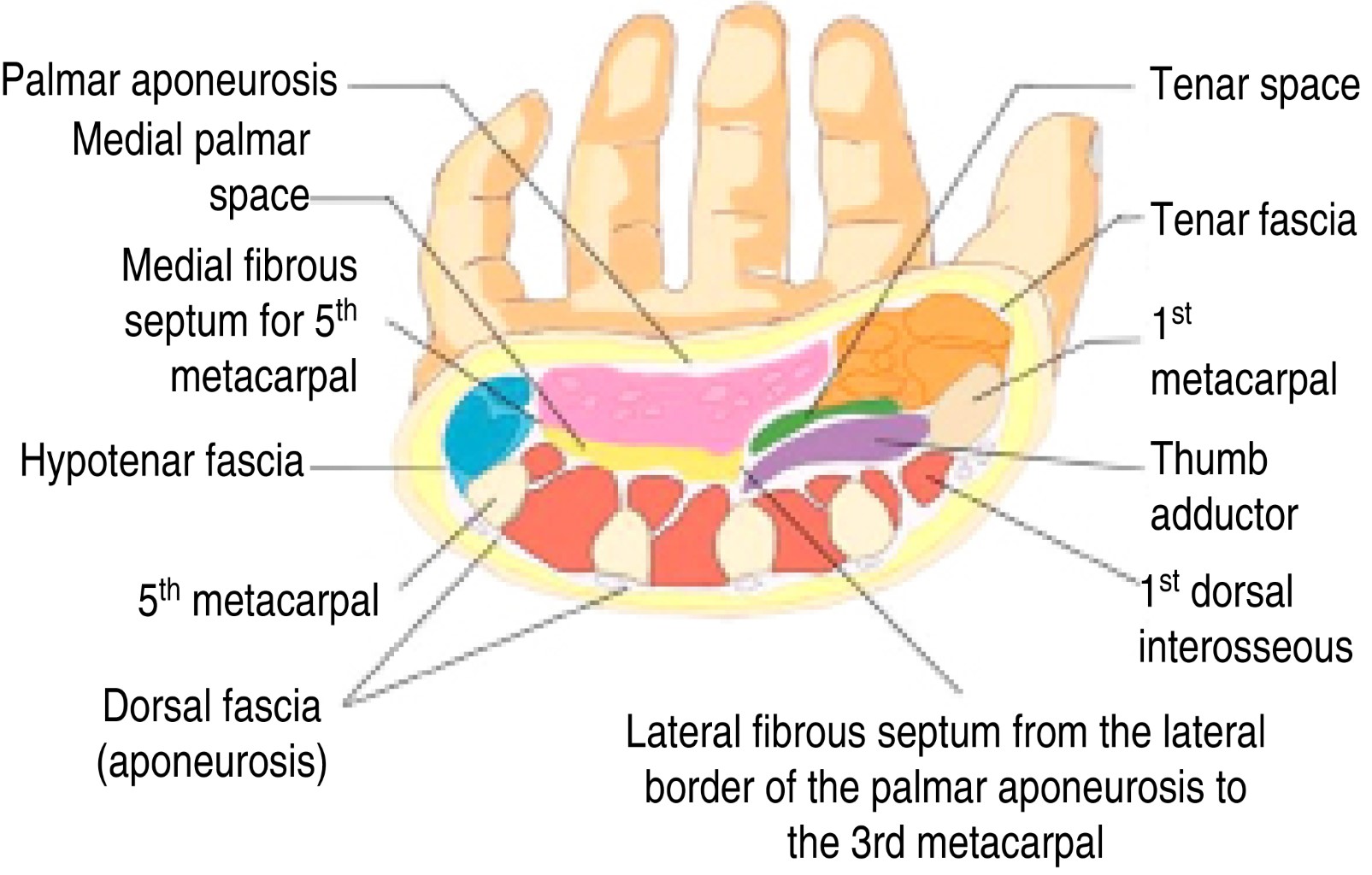 The human body has approximately 46 spaces containing muscle, nerves, and blood vessels. Of these, nine are located in the trunk and the remaining 37 in the extremities in confined spaces with nerves and vessels that innervate and irrigate the muscle tissue covered by a membrane of aponeurotic connective tissue called fascia, with the function of insulation, support, and protection.7,8