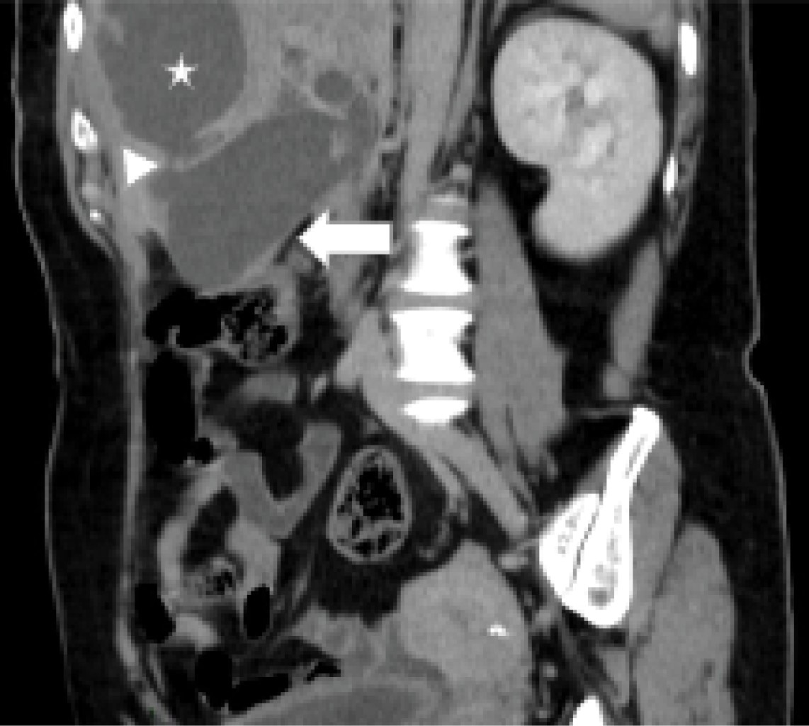 In the approach to this pathology, abdominal ultrasound can provide vital information for the diagnosis; however, a computerized tomography scan is a more sensitive tool to reach an accurate diagnosis and plan the resolution of the condition.2