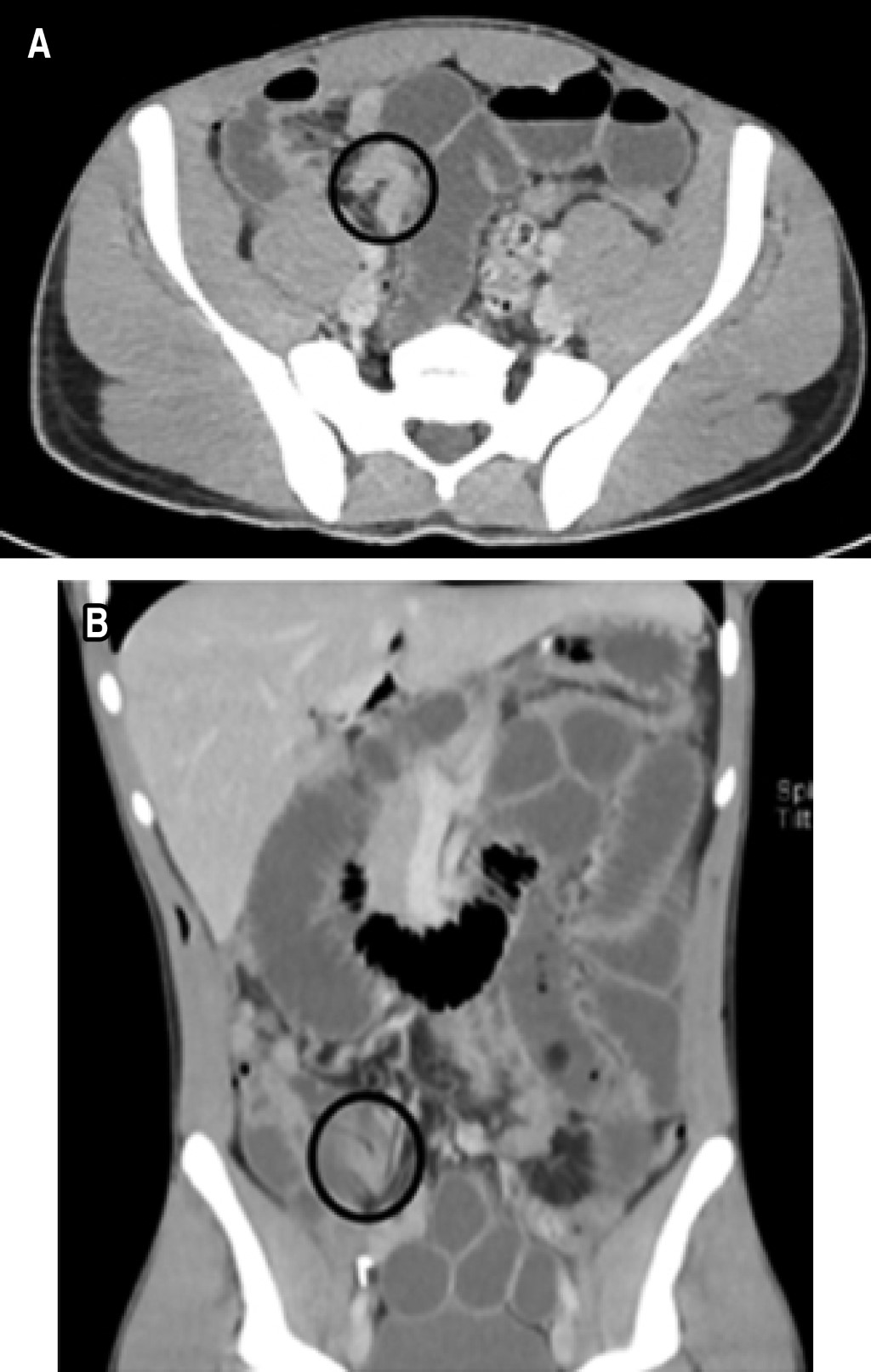 On physical examination, his vital signs were within normal parameters; the mucous membranes were underhydrated, the abdomen had decreased peristalsis, and was soft, depressible, and with mild pain on mid and deep palpation in a generalized manner, with no evidence of peritoneal irritation.