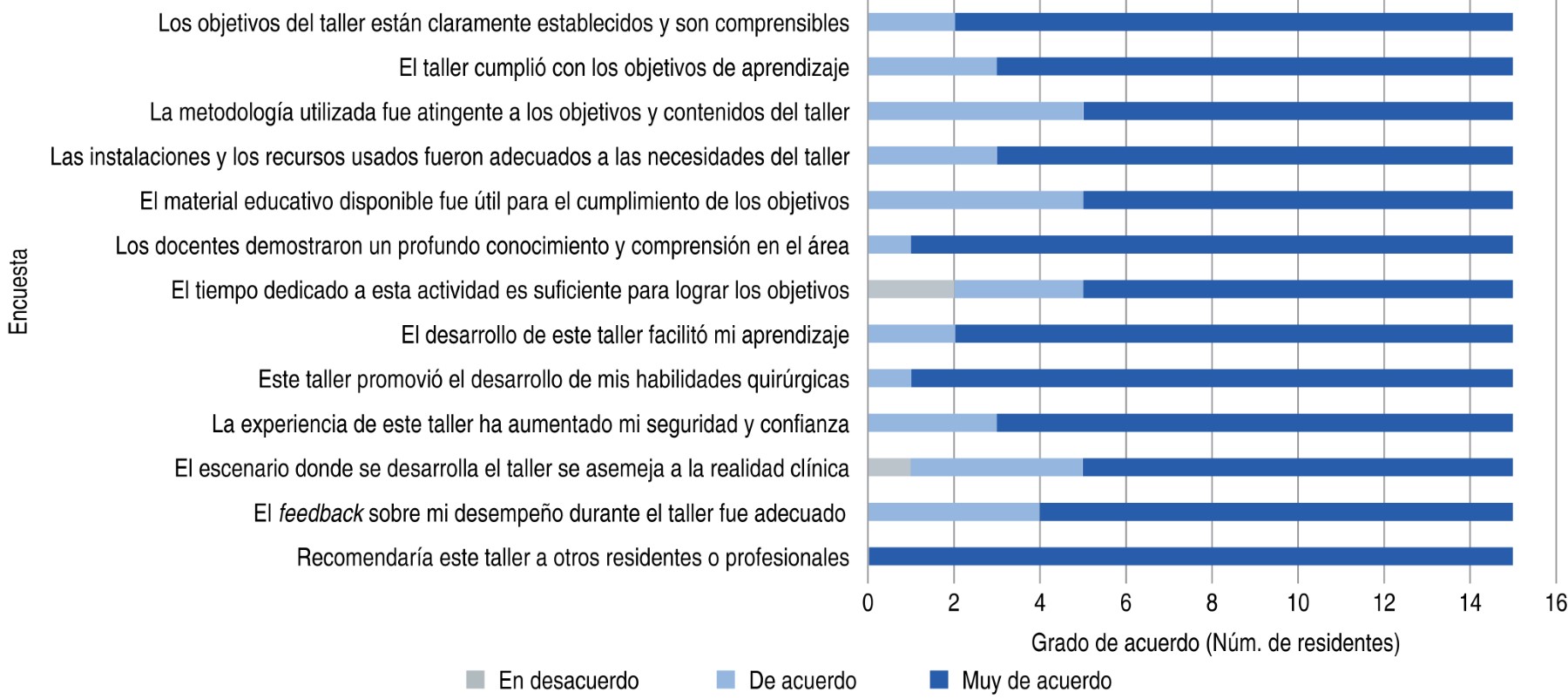 Conclusions: the designed and implemented course is a notable contribution to the acquisition and promotion of surgical skills of residents. It proved to be a highly satisfactory experience, positively valued by residents, achieving improvement in the self-reported surgical skills.