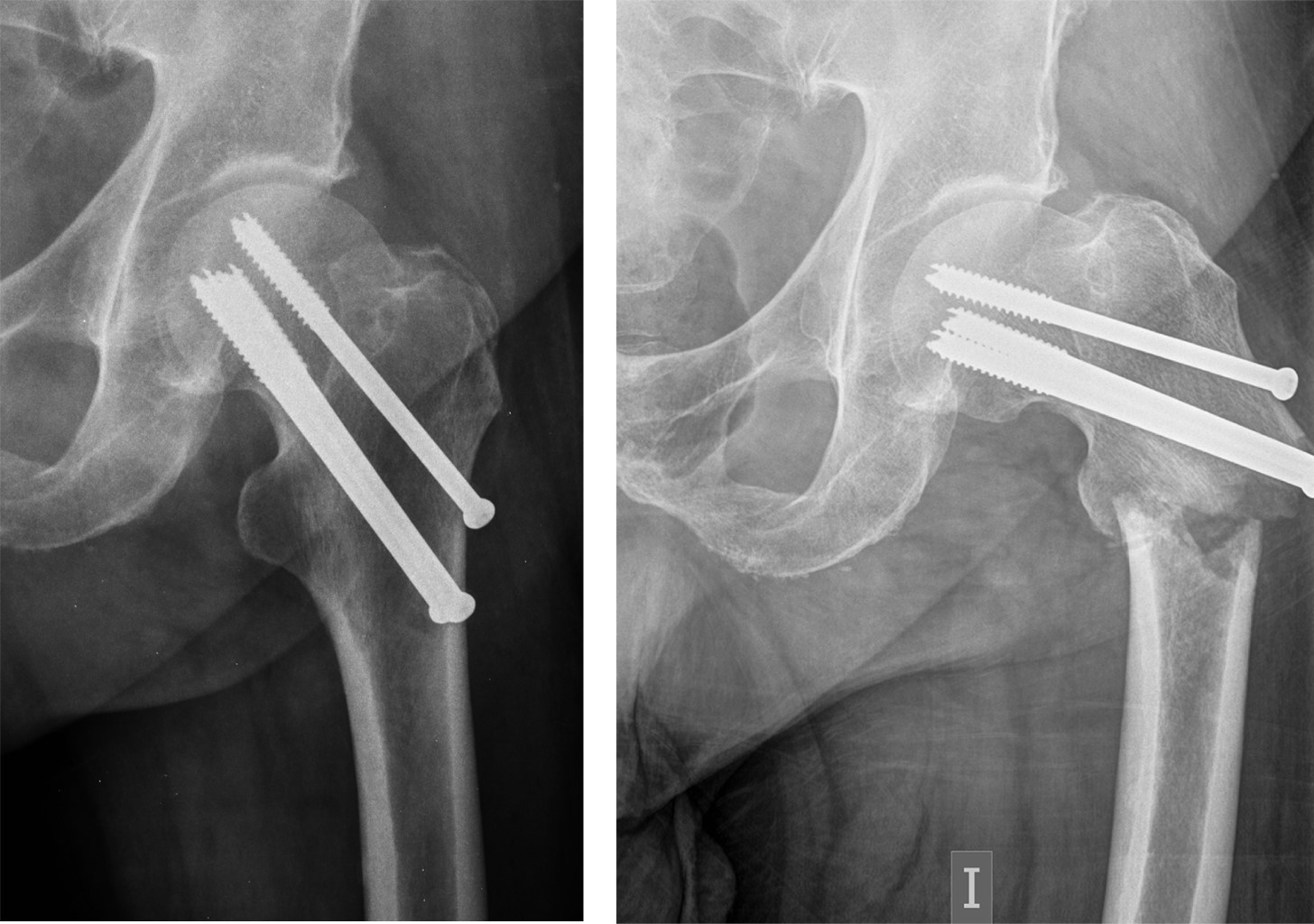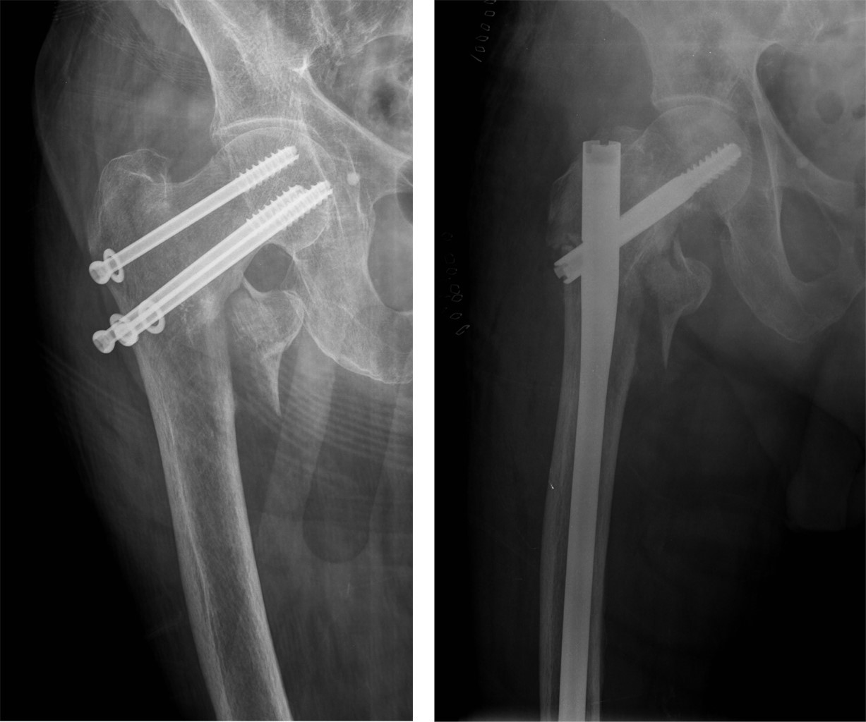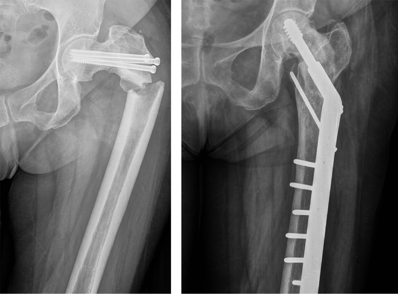 Pelet S, Leyvraz PF, Garofalo R, Borens O, Mouhsine E. Sub- or intertrochanteric fracture following screw fixation of an intracapsular proximal femoral fracture: true complication or technical error? Swiss Surg. 2003; 9(2): 82-6.