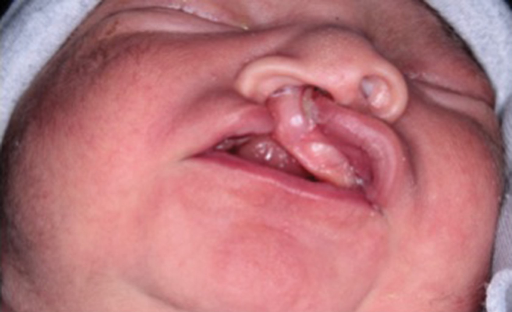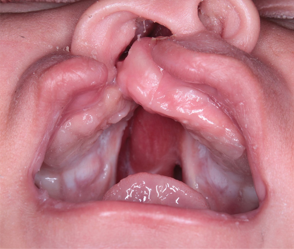 Introduction: cleft lip and palate is a craniofacial malformation most frequent congenital and is produced by a failure to fuse facial processes during early periods in embryonic development. Objective: the objective of pre-surgical orthopedics is to facilitate the first intervention for the correction of this condition, reducing surgical trauma, obtaining less scar formation and less risk of post-surgical complications, in addition to helping the patient obtain better swallowing to improve the nutritional aspect in the baby. Material and methods: the patient came to the clinic at two weeks of age for impression taking and placement of the orthopedic device. The NAM (nasoalveolar molding) and the transport tape were placed and appointments were made once a month to evaluate the nasal stent, activate it and check that the placement of the tape was correct, as well as to check that the baby's feeding was improving. Results: an anatomical and physiological improvement is observed, as well as a 6mm decrease in the cleft lip and nasal remodeling. An improvement in swallowing and feeding with weight gain was observed. Conclusions: pre-surgical orthopedics with NAM is an acceptable and recommended therapy for patients with cleft lip and palate since it helps us to generate better surgical results in addition to collaborating with the nutritional aspect of the baby.REFERENCES