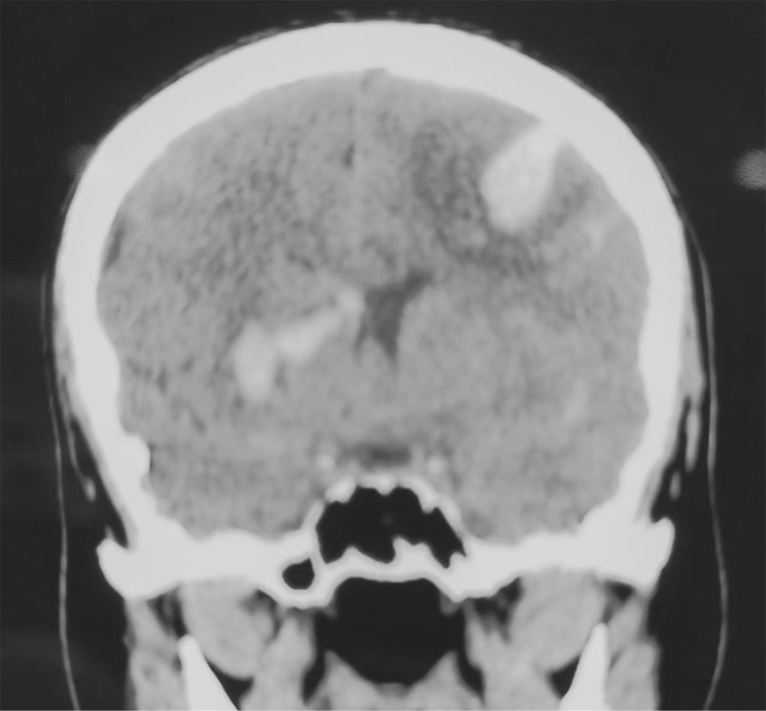 Introduction: primary vasculitis of the central nervous system (PVCNS) is rare, with heterogeneous clinical presentation. Case report: 35-years-old female with seven days with headache, without improvement with analgesics, adding vomiting and stupor, right hemiparesis, and aphasia; CT showed hemorrhages in the right caudate nucleus and left frontal lobe, laboratory tests including antibodies and acute phase reactants normal; pan-angiography showed: a pattern of vasculitis of trunk branches in cerebral arteries and occlusion of the inferior longitudinal sinus; with a diagnosis of possible PVCNS. Drainage of frontal hemorrhage and biopsy was performed, which confirmed the diagnosis; beginning treatment with methylprednisolone bolus and cyclophosphamide, obtaining clinical improvement. Conclusions: PVCNS presents heterogeneous clinical manifestations of acquired neurological deficits; it is a challenge. Its diagnosis implies the existence of the following: a) the acquired neurological deficit, unexplained by another cause, b) angiographic or histopathological evidence of PVCNS, c) absence of systemic vasculitis or other condition that explains it.REFERENCES