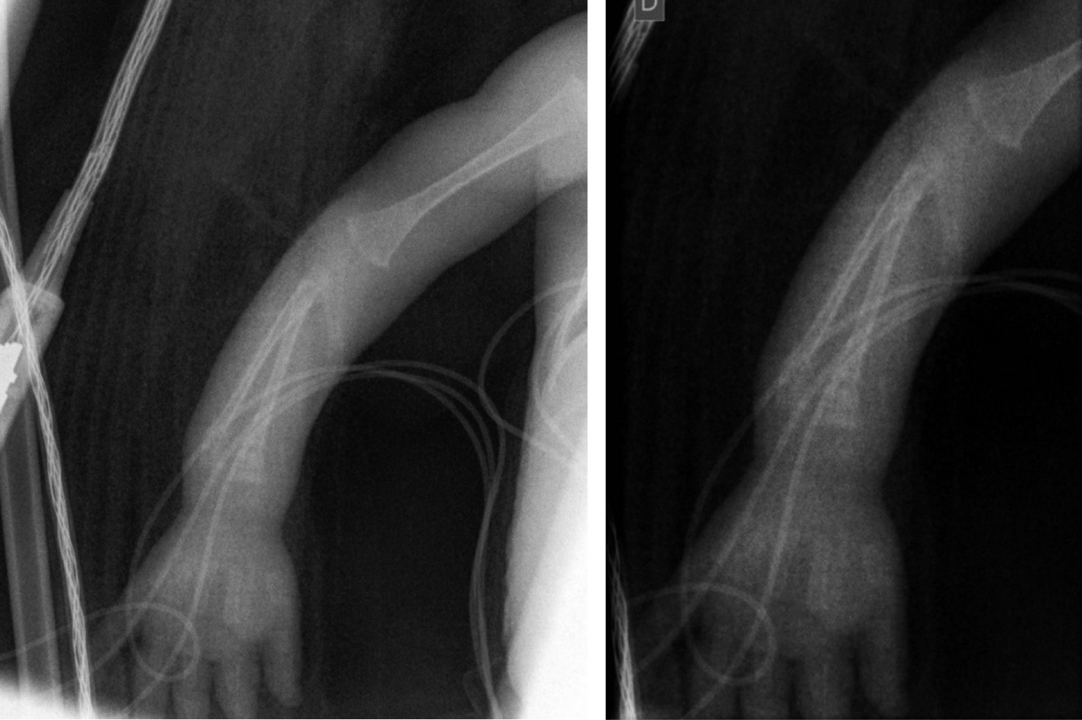 Jones S, Bell MJ. Distal radius fracture in a premature infant with osteopenia caused by handling during intravenous cannulation. Injury. 2002; 33(3): 265-266.