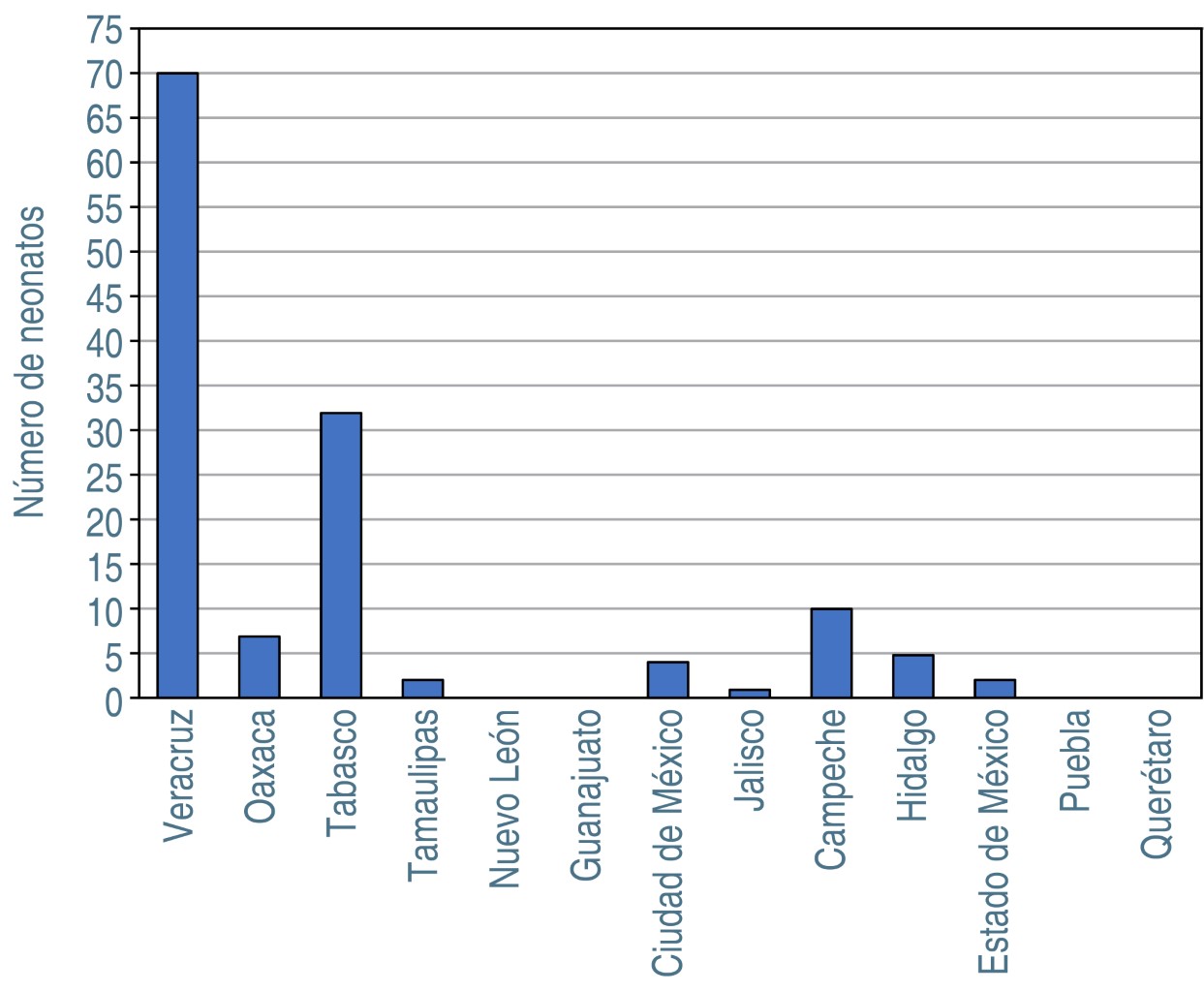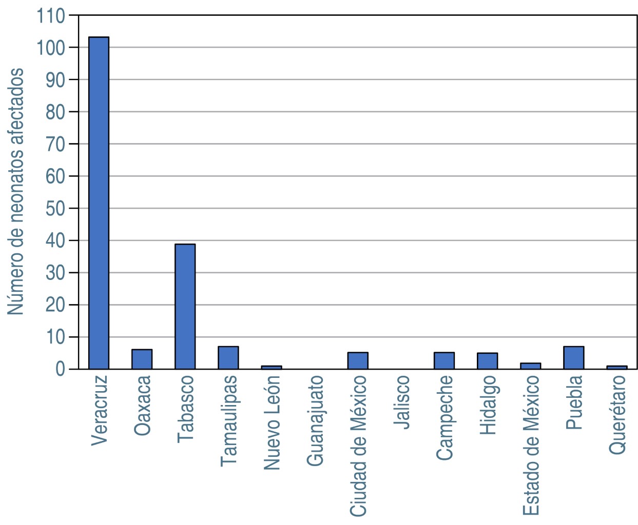Trigo-Madrid M, Díaz-Gallardo J, Mar-Aldana R, Ruiz-Ochoa D, Moreno-Graciano C, Martínez-Cruz P et al. Resultados del Programa de Tamiz Neonatal Ampliado y epidemiología perinatal en los servicios de sanidad de la Secretaría de Marina Armada de México. Acta Pediatr Mex. 2014; 35(6): 448-458.