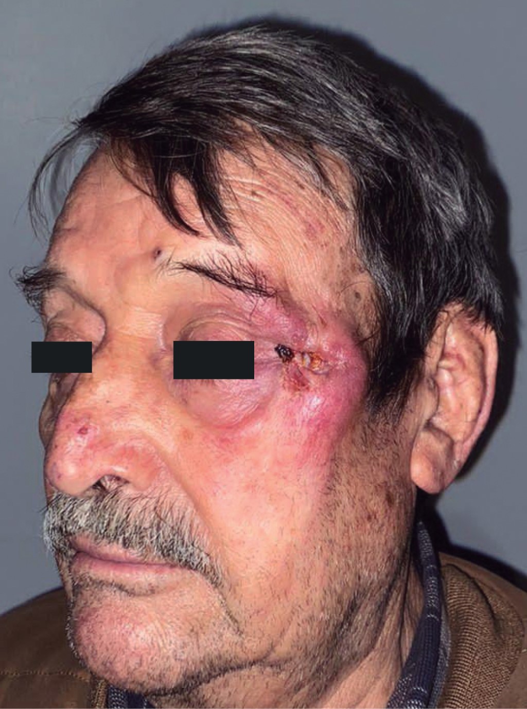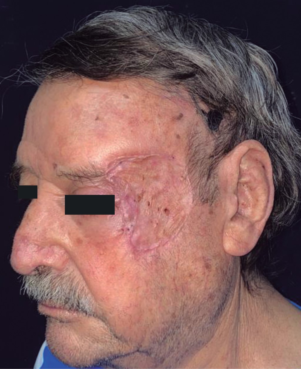 The reconstruction of cutaneous and soft tissue defects in the head and neck region presents a challenge to the reconstructive surgeon in terms of providing satisfying results that are both functional and aesthetically acceptable. The temporoparietal fascia flap represents a key tool in the plastic surgeon's repertoire, granting us with the ability to get a pliable flap of considerable dimensions, with a wide rotation arc and robust vascularity using a relatively simple surgical technique with low donor site morbidity. This paper aims to present the case of an elderly patient with multiple risk factors who underwent a wide excision in the periorbital and supraciliary region after developing a skin neoplasm. An immediate reconstruction of the ensuing defect was possible by means of a pediculated temporoparietal fascia flap that had a satisfactory outcome, with minimal aesthetic and functional morbidity, as well as absence of tumoral recurrence.