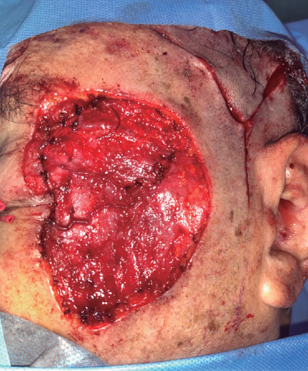 Reconstruction with temporal fascia flap for a defect in the upper third of the face