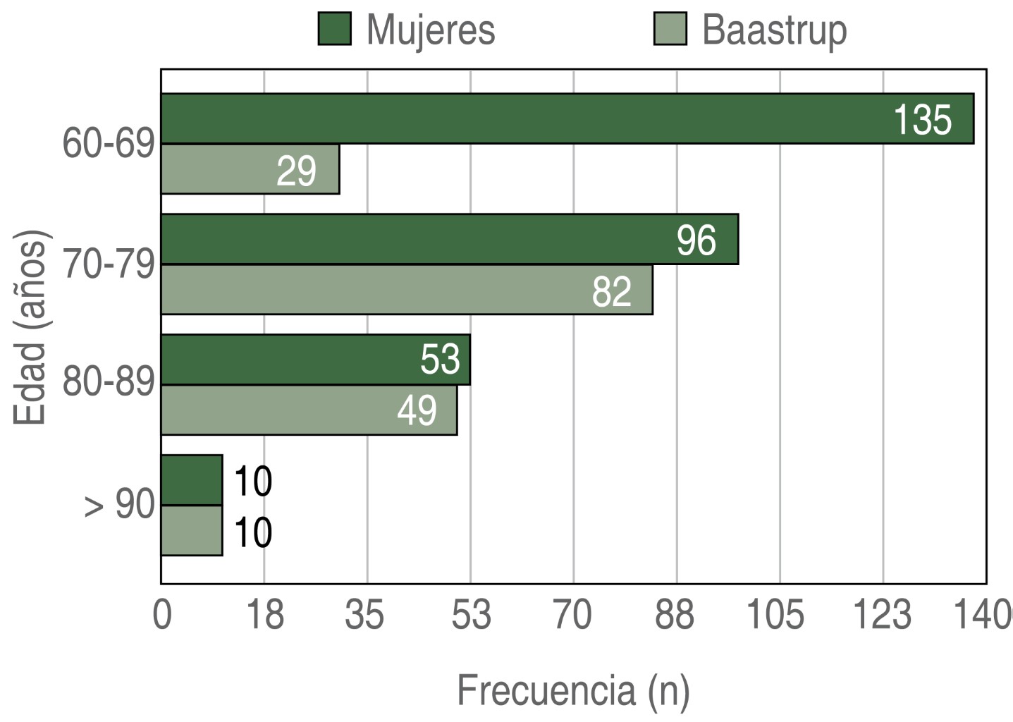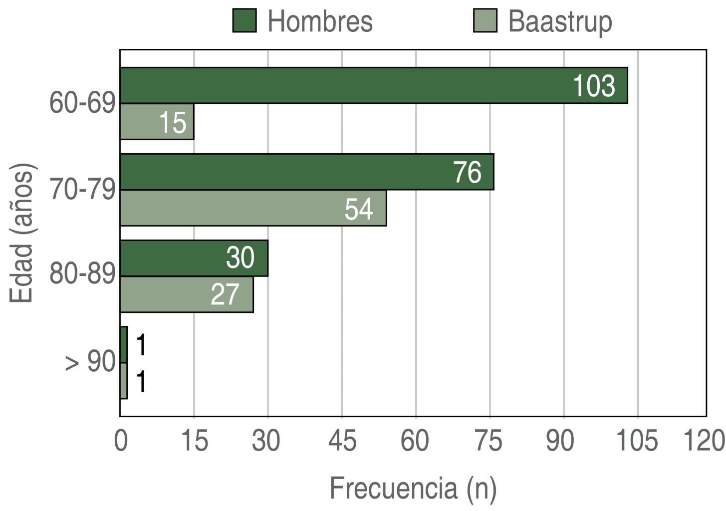 Introduction: low back pain is a frequent reason for consultation, its prevalence increases with age, it is estimated that 60 to 90% of the adult population will develop low back pain throughout their lives, becoming one of the main reasons for absenteeism. work in Mexico. Baastrup disease is a little-known cause of low back pain; it is caused by abnormal contact between the lumbar spinous processes during flexion-extension movements. It is attributed as one of the main causes of chronic low back pain as part of the degenerative process of the spine; however, due to the lack of diagnostic suspicion, directed treatment is rarely indicated, which triggers persistence of symptoms and therapeutic failure. Objective: to establish the prevalence of Baastrup disease in patients over 60 years of age with chronic low back pain and determine the findings in imaging studies, with the aim of increasing the diagnostic suspicion of said condition and including it in the list of possible causes of low back pain. at the Social Security Institute of the State of Mexico and Municipalities (ISSEMyM). Material and methods: cross-sectional and descriptive study, in which a total of 504 patients over 60 years of age with a diagnosis of chronic low back pain who underwent lumbar spine imaging studies were included. Results: the imaging studies of 504 patients were analyzed, of which in 267 cases (97 men and 170 women) changes compatible with Baastrup disease were found, thus establishing a prevalence of 52.97% in the studied population; however, in none of the cases mention this condition as a diagnostic conclusion. In all cases, a decrease in the interspinous space, reactive sclerosis and flattening of the interspinous contact surfaces were observed. Conclusions: Baastrup disease has a high prevalence in patients over 60 years of age with chronic low back pain. In advanced stages the diagnosis can be established through radiographic studies of the lumbar spine.REFERENCES