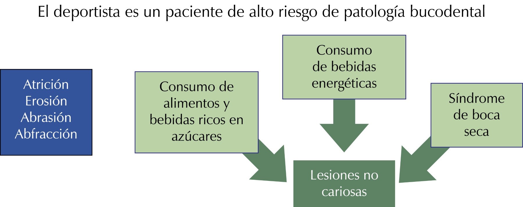 The natural wear of the teeth occurs depending on factors such as: quality of the dental structure, quality of the saliva, facial biotype that determines the bite force, according to these local oral factors, the teeth age. But in athletes they present a pattern of greater and continuous wear due to the type of sport they practice, the hours of training, the consumption of drinks with an acidic pH, vigorous tooth brushing; all these factors can lead them to develop non-carious lesions.
