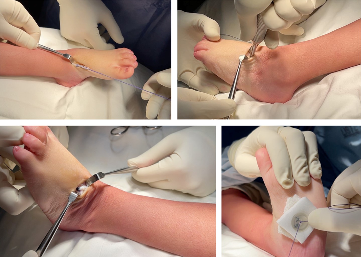 Rhee C, Burgesson B, Orlik B, Logan K. Suture button technique for tibialis anterior tendon transfer for the treatment of residual clubfoot. Foot Ankle Orthop. 2020; 5(2): 2473011420923591. doi: 10.1177/2473011420923591.