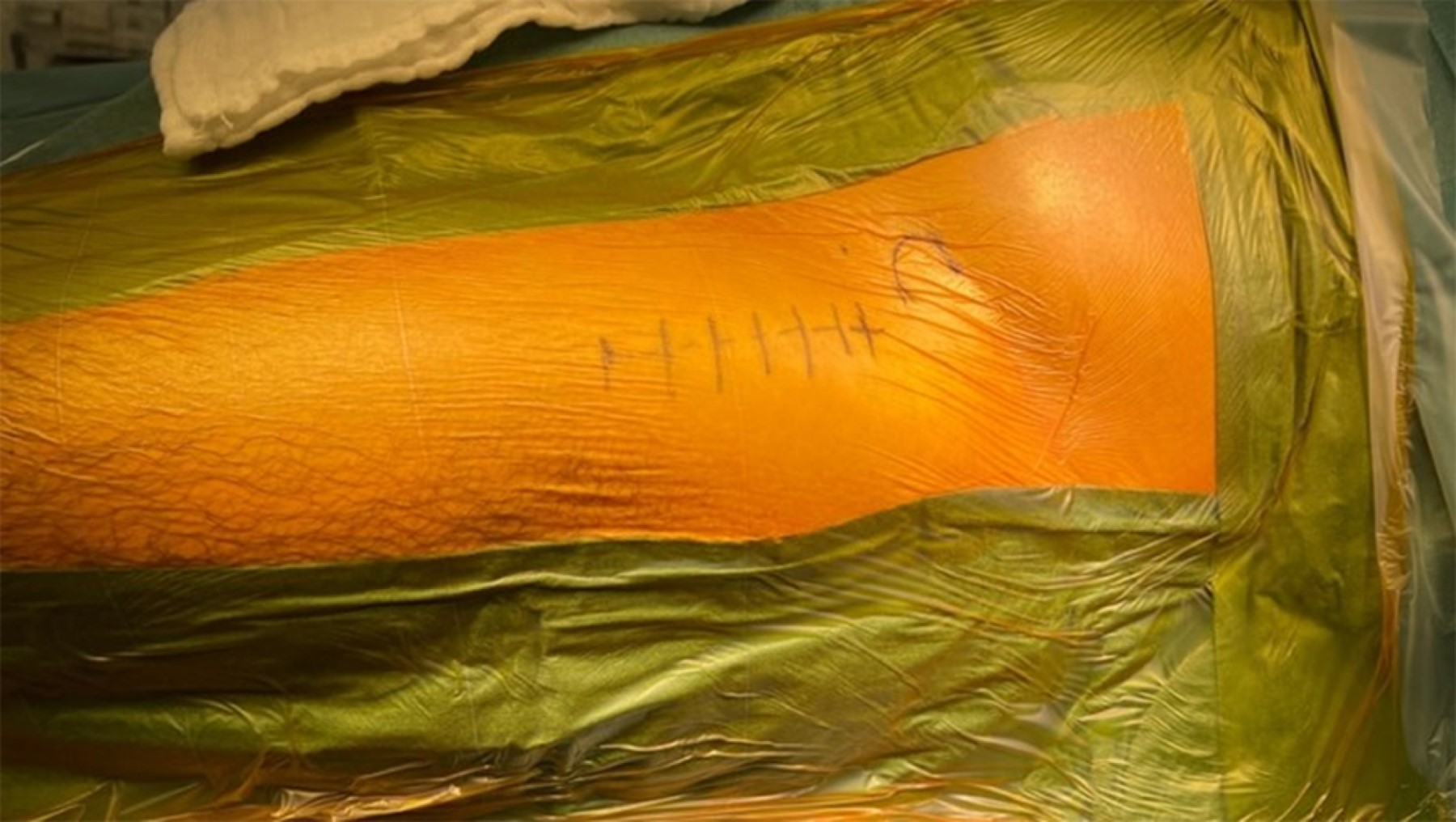 As in other procedures, we have found rare complications, some directly related to the approach and others to patients' medical conditions. One 58 years old female patient who had previous bariatric surgery and subsequent skin and fat resection had a remaining lack of sensitivity area on the anterior thigh close to the incision used and had a second-degree burn after local heat placement in the immediate postoperative days with deep infection not involving the implant that required multiple debridement and skin grafting.
