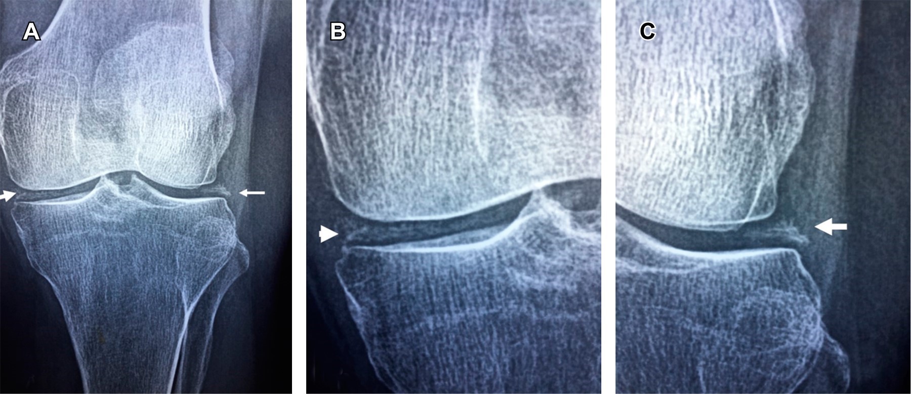 Introduction: primary hyperparathyroidism is the third most common metabolic disorder, causing an increase in the parathyroid hormone and serum calcium. It is caused by hyperactivity of the parathyroid glands; in 85% of cases, it is due to a parathyroid adenoma. It is asymptomatic (> 80%), but its manifestations can be musculoskeletal, neurological, psychiatric, renal, cardiovascular, and gastrointestinal. Case report: a 72-year-old female with hypertension, eight months with insomnia, frequent nausea, gastroesophageal reflux, and constipation, presented with left knee pain of two months' evolution without improvement with NSAID. X-ray showed linear meniscal calcification; laboratory studies showed an elevation of serum calcium, ionic calcium, parathyroid hormone, and urinary calcium. The scintigram with Tc99m MIBI showed parathyroid adenoma in the right lower lobe of the thyroid gland. She received surgical treatment; the anatomopathological study confirmed a follicular-type adenoma of the right parathyroid gland. Conclusions: chondrocalcinosis on plain radiography is a frequent finding in elderly people, and most of them will be asymptomatic and will not require treatment. However, whenever it is detected, it is essential to suspect the presence of hyperparathyroidism, so measurement of serum calcium should be part of the daily clinical evaluation of the elderly patient.REFERENCES
