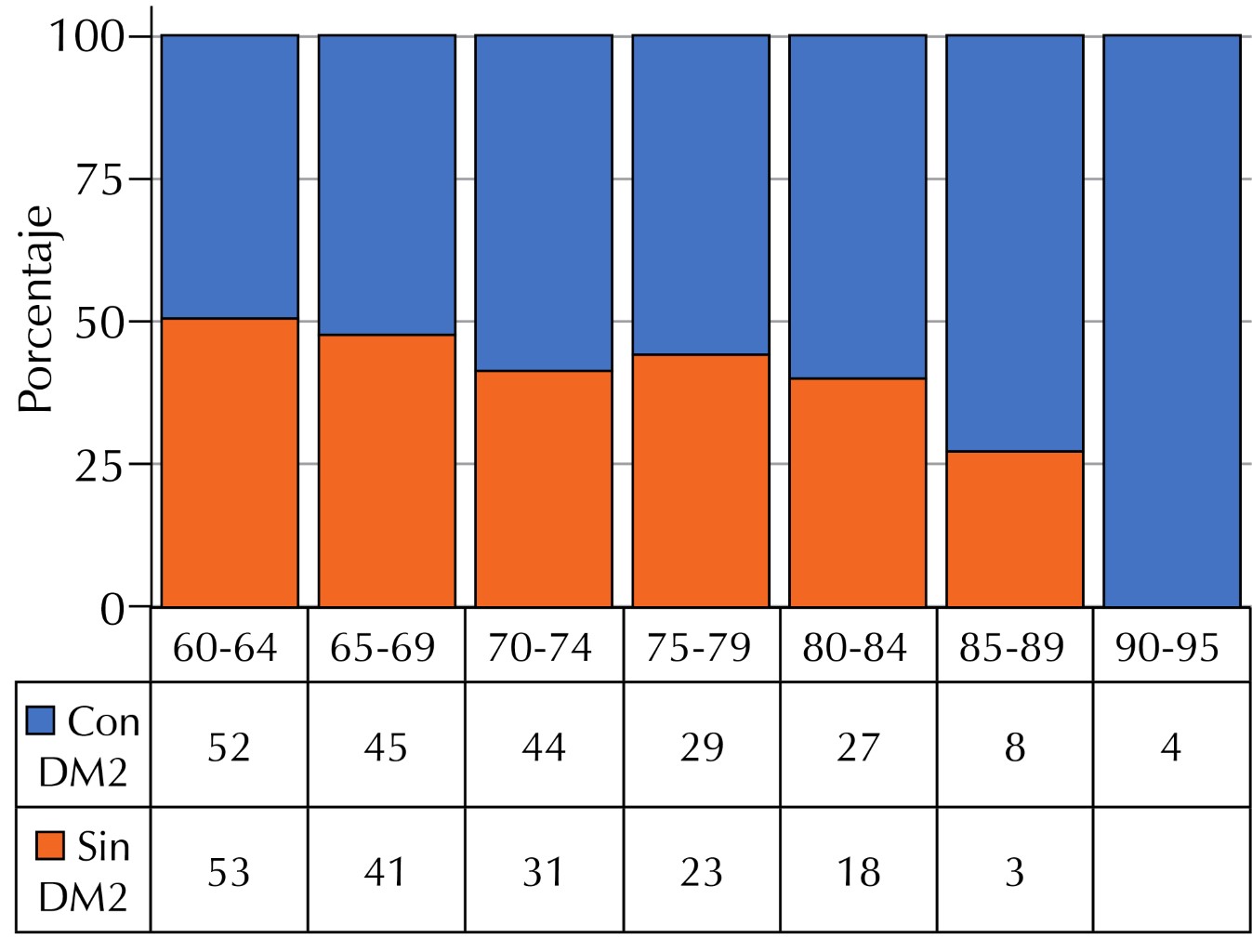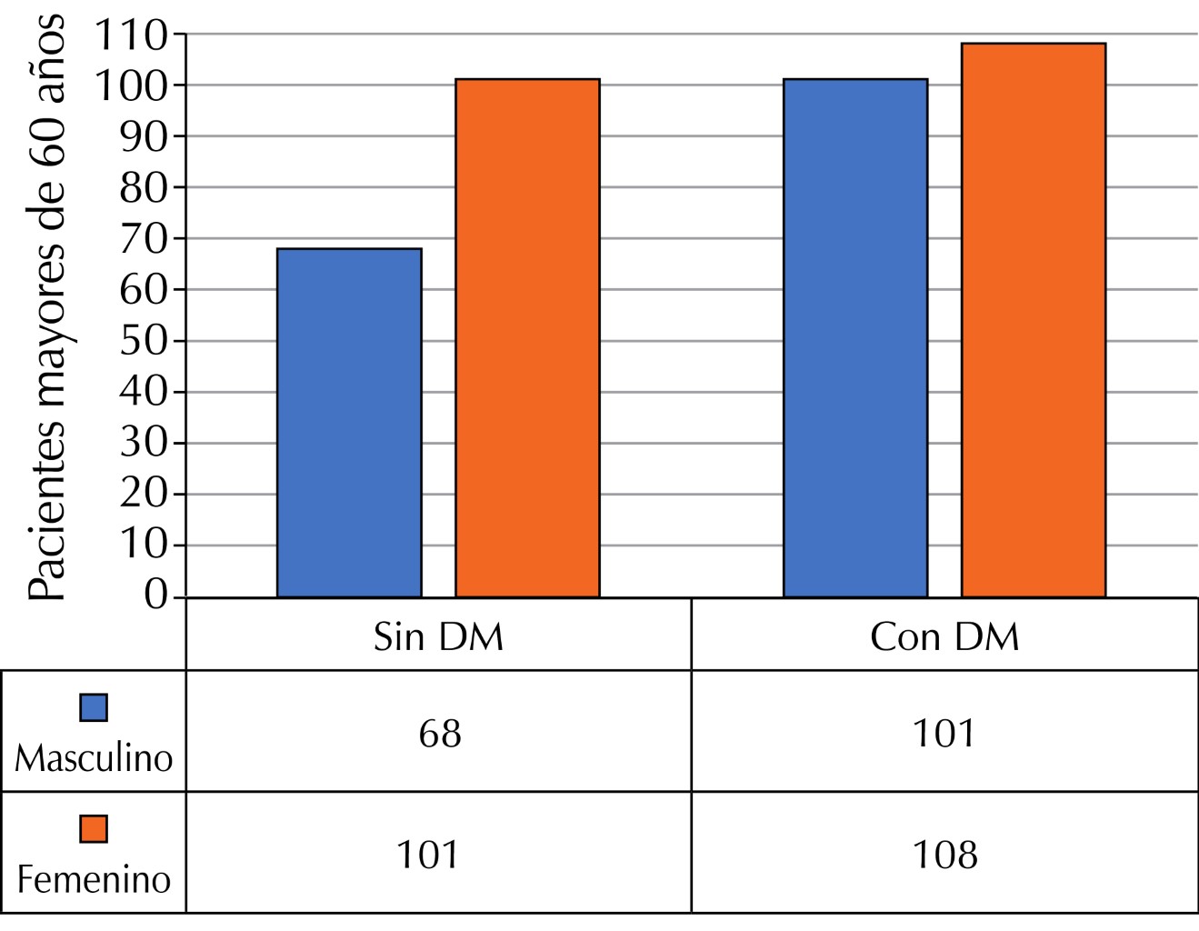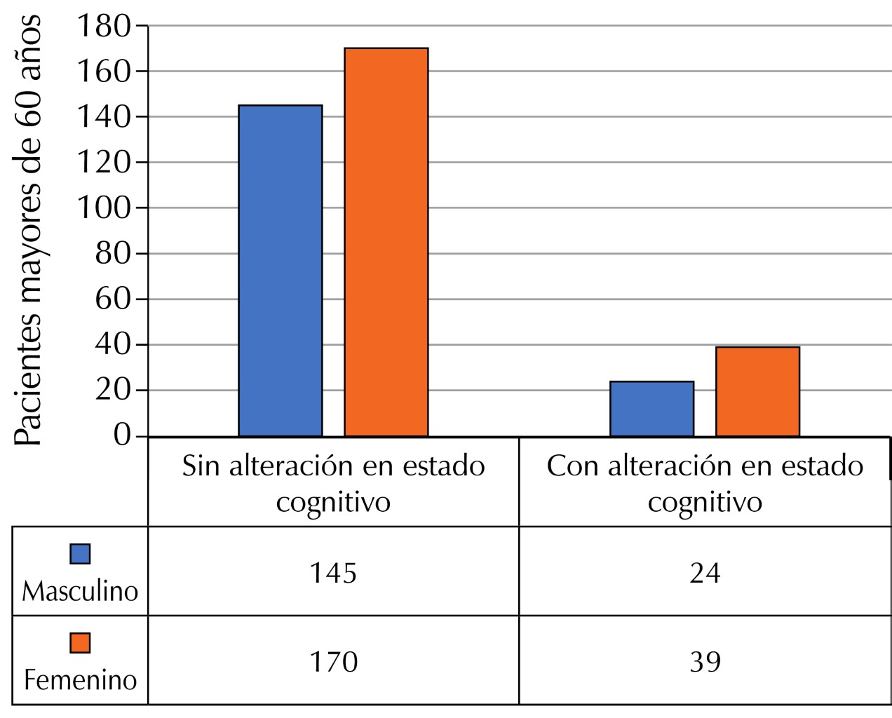 2 [1, N = 378] = 7.85, p < 0.05). The probability of cognitive alterations is double in older adults with diabetes according to the prevalence ratio.