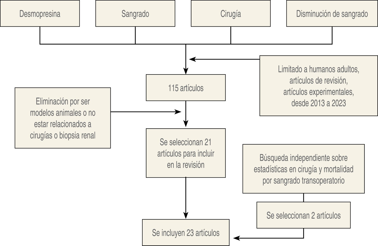 Material and methods: systematized search in PubMed with key words desmopressin, bleeding, surgery, decreased bleeding, limited to humans, review and experimental articles; obtaining 115 results, selecting 21 and adding two independent search articles on surgery and hemorrhage statistics worldwide.