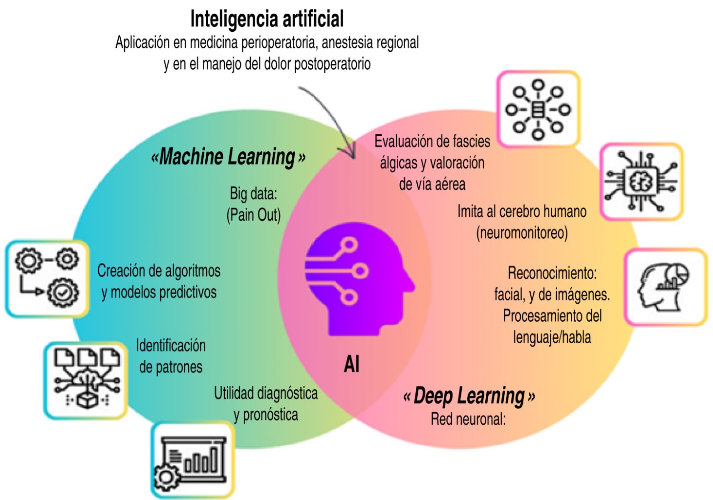 Throughout history, science and technology have become allies in the area of healthcare. We are in a new era where the development of artificial intelligence (AI) and its application in medicine can improve the decision making of healthcare professionals to reduce risks, based on tools such as predictive algorithms or artificial neural networks. The application of artificial intelligence is part of both the present and the future of anesthesiology and perioperative medicine, being a useful tool for the anesthesiologist. This article focuses on the application of AI for the creation of algorithms, as well as its potential to revolutionize clinical practice in the management of post-surgical pain.